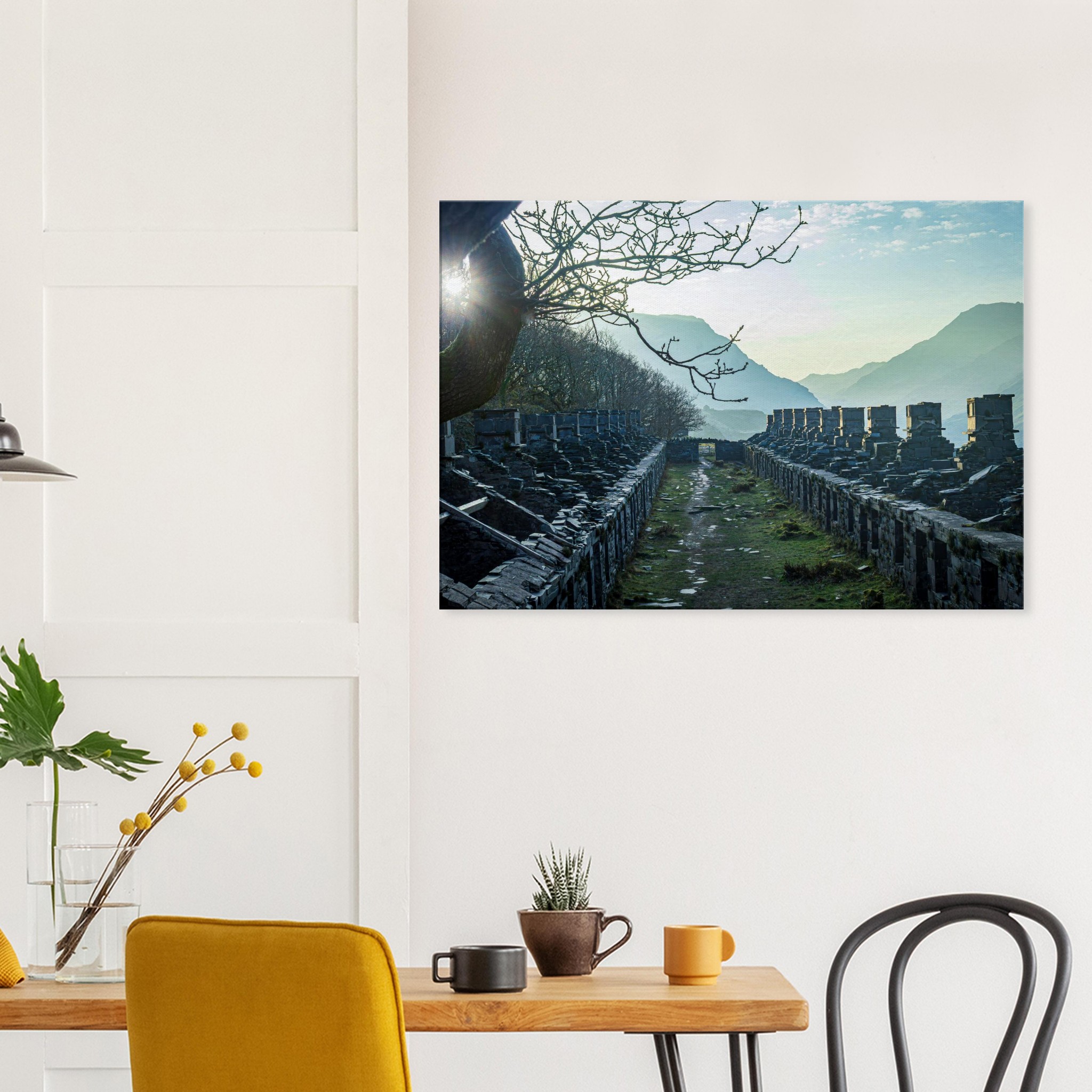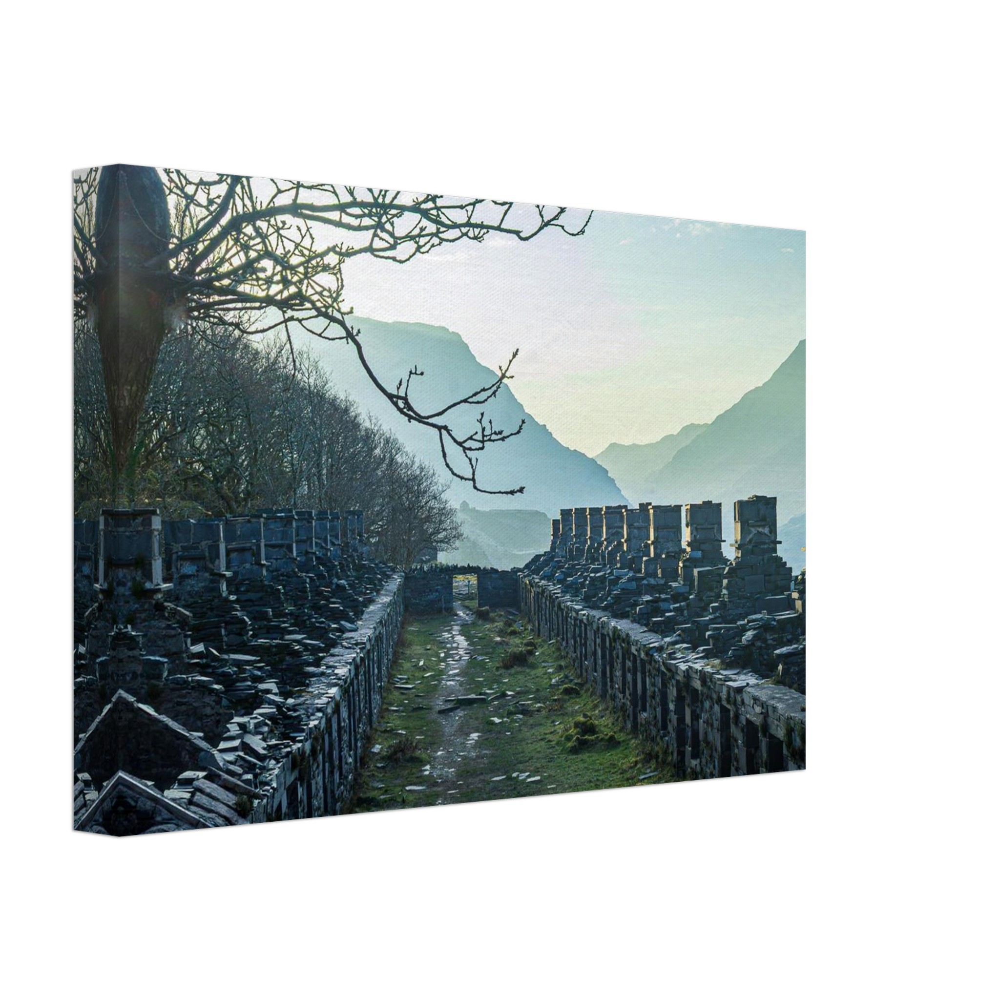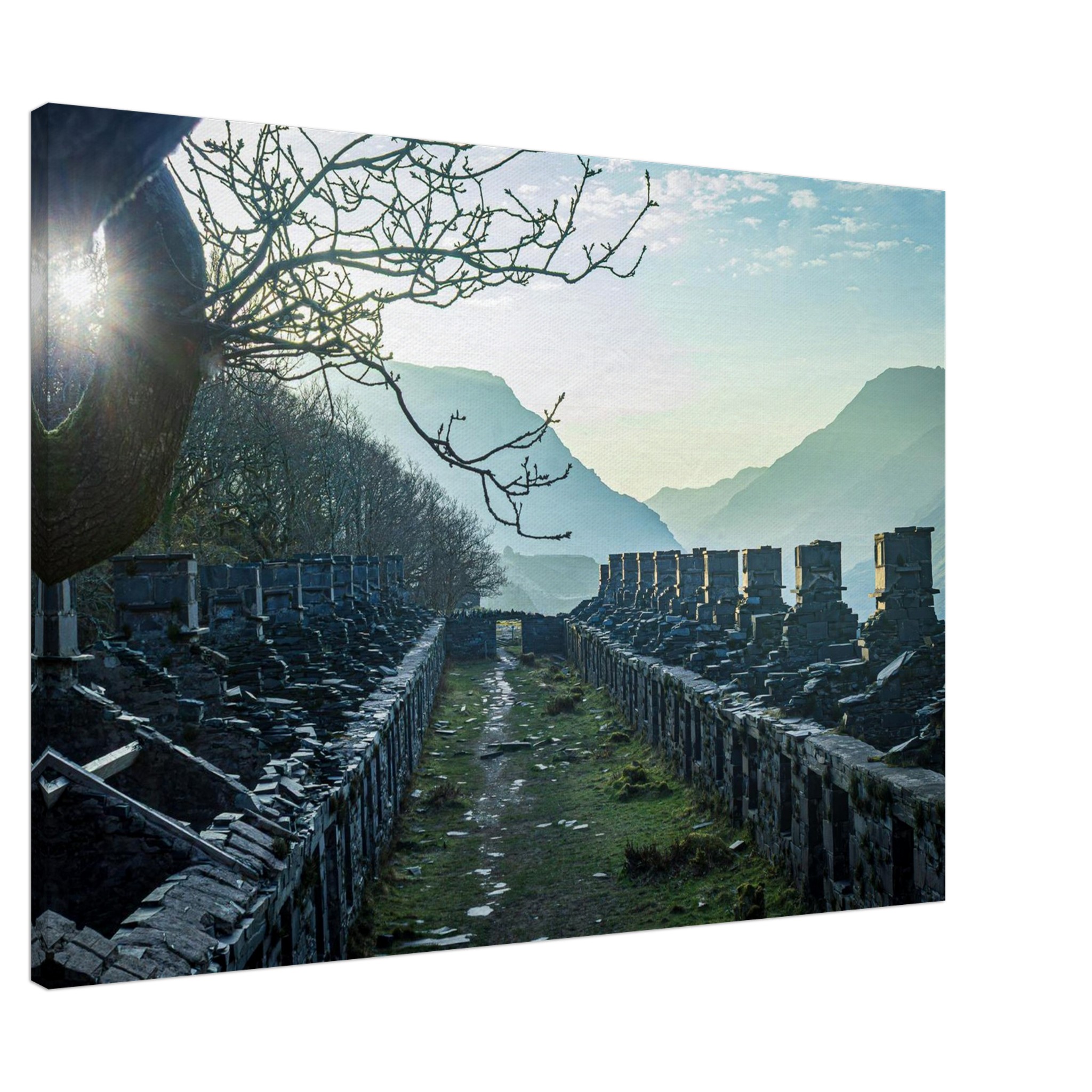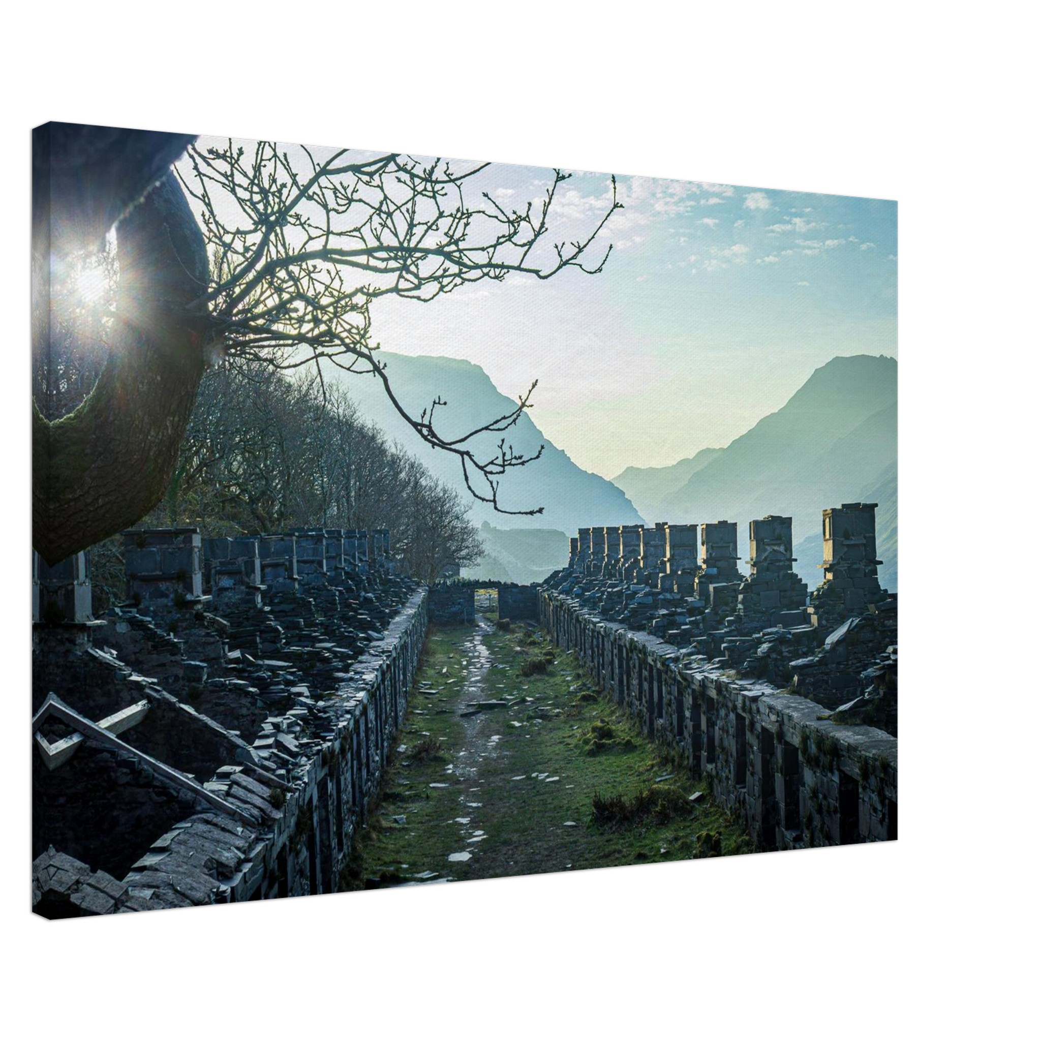 Transform your space with our breathtaking Anglesey Barracks Sun Bath canvas print, capturing the enchanting dawn light during spring in Snowdonia National Park, North Wales. This stunning artwork captures the glorious golden hour, bringing it into your home and making it a perfect centerpiece for any room.