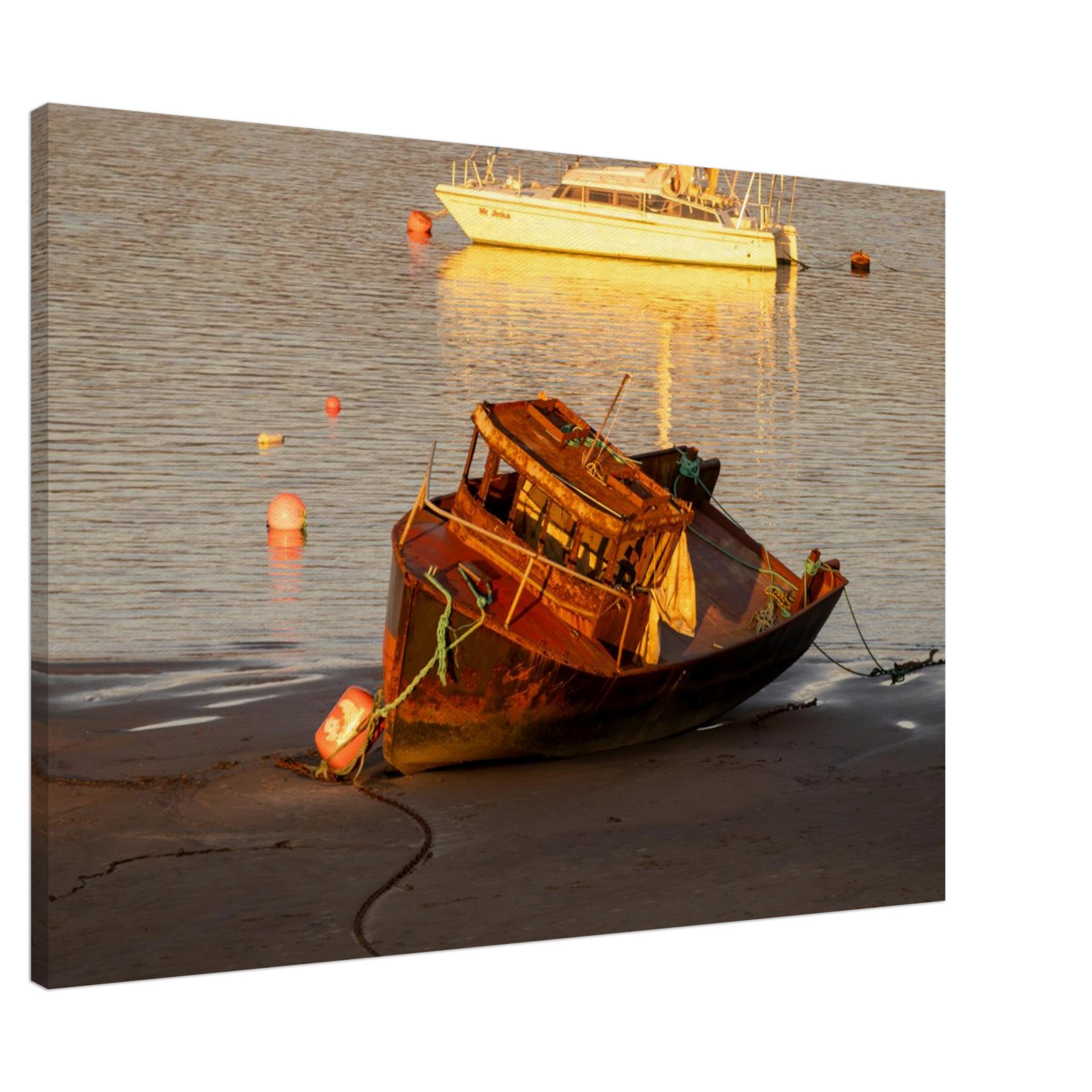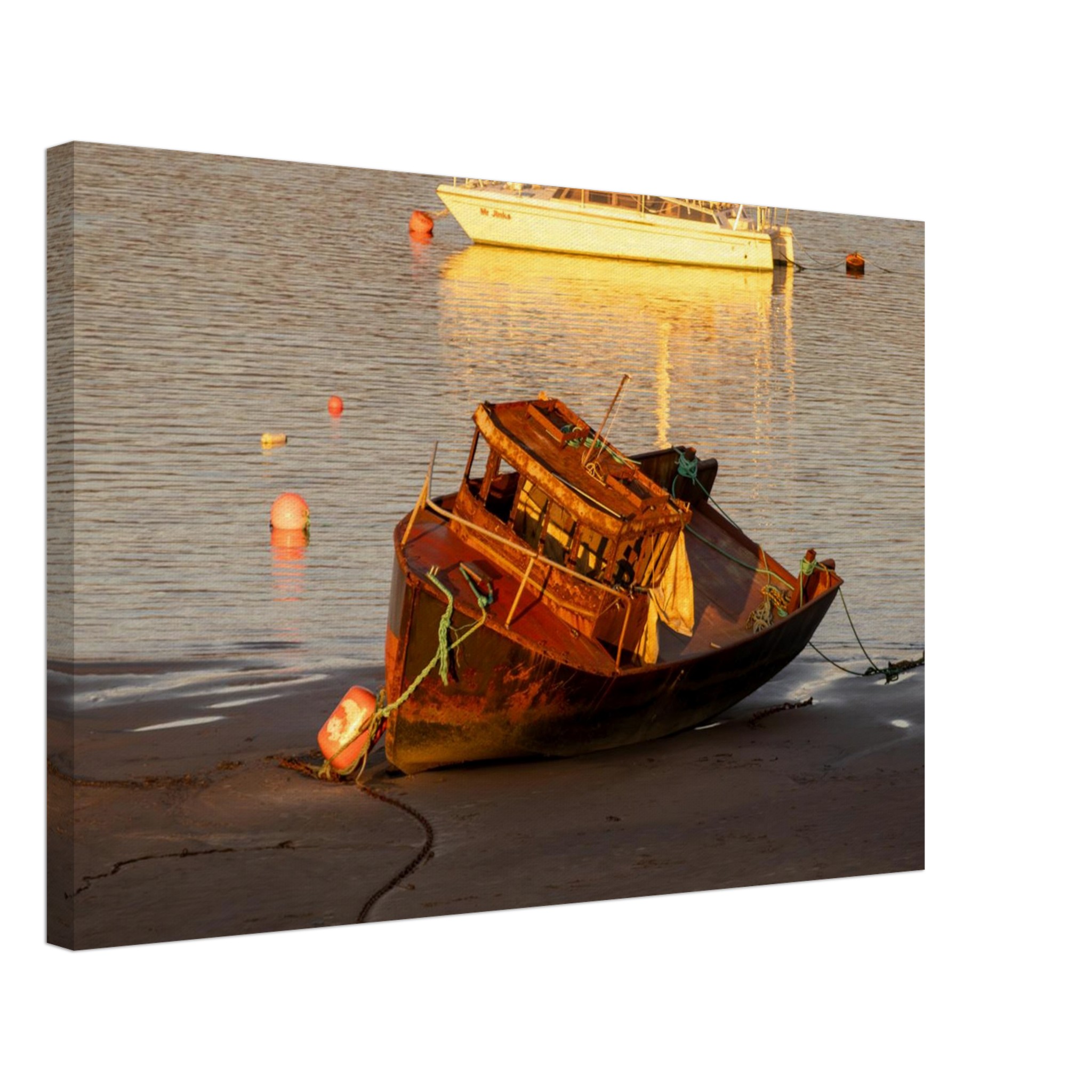Transform your space with our breathtaking canvas print showcasing a golden hour barmouth shipwreck bathed in sunlight during a mesmerizing spring sunset at Barmouth Beach, North Wales. This stunning visual art piece captures the serene beauty of nature while adding a touch of maritime charm to your decor.