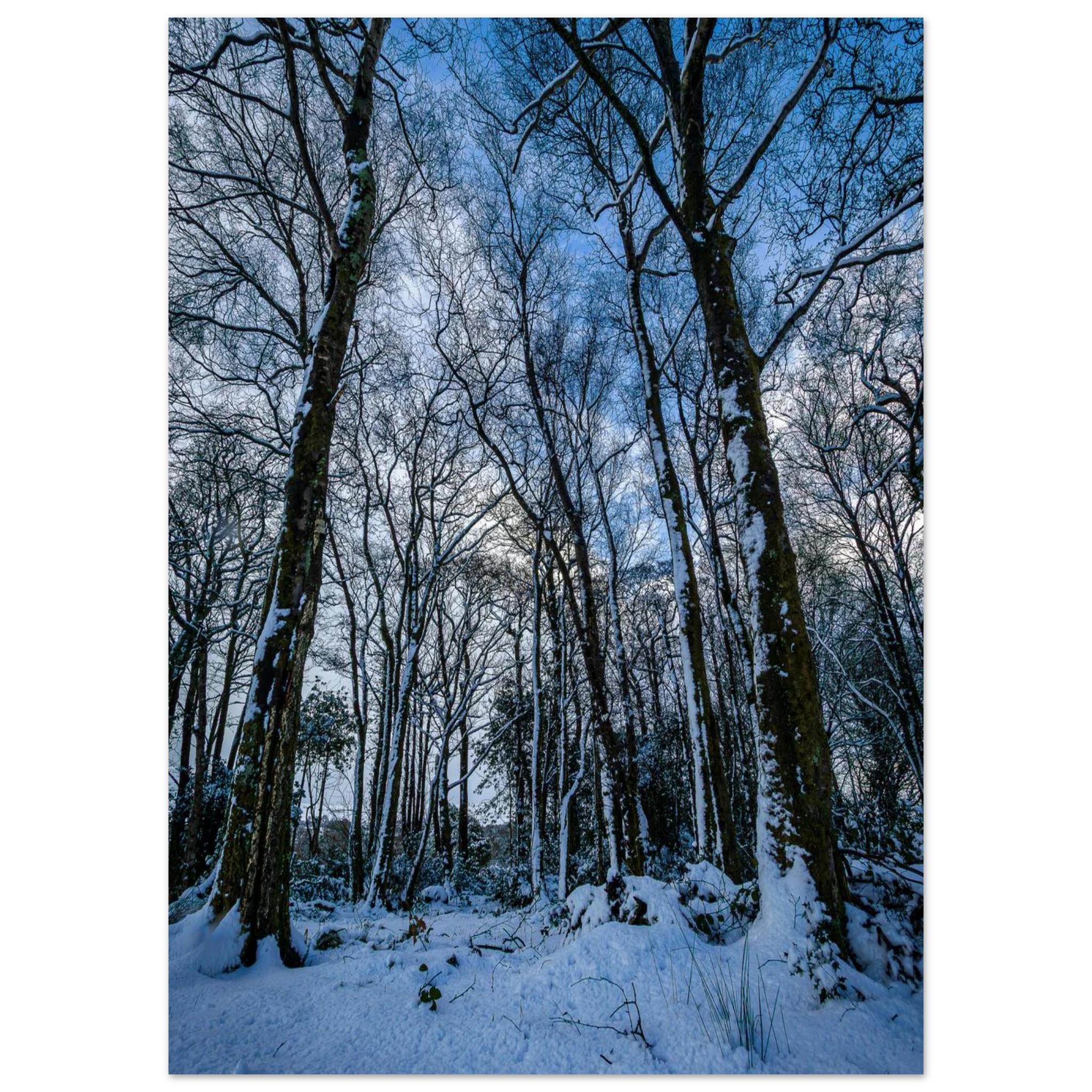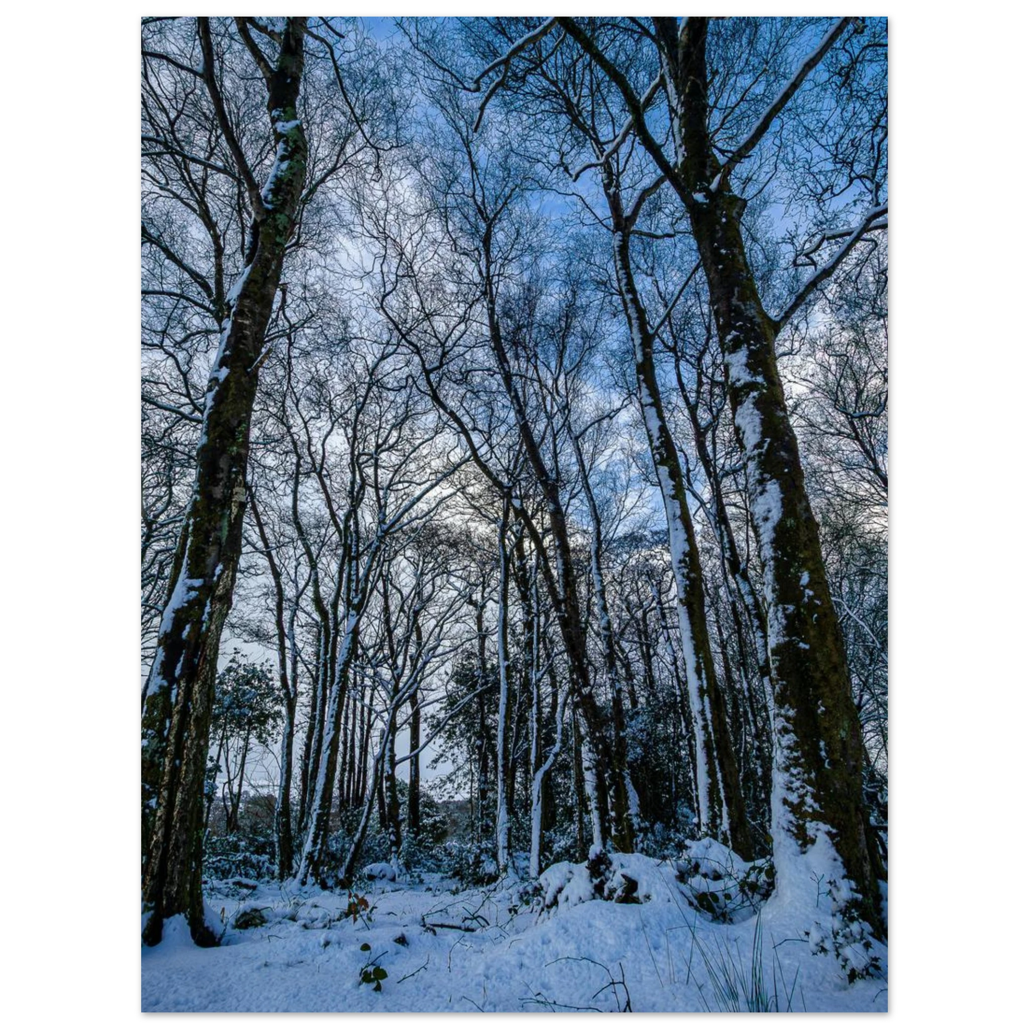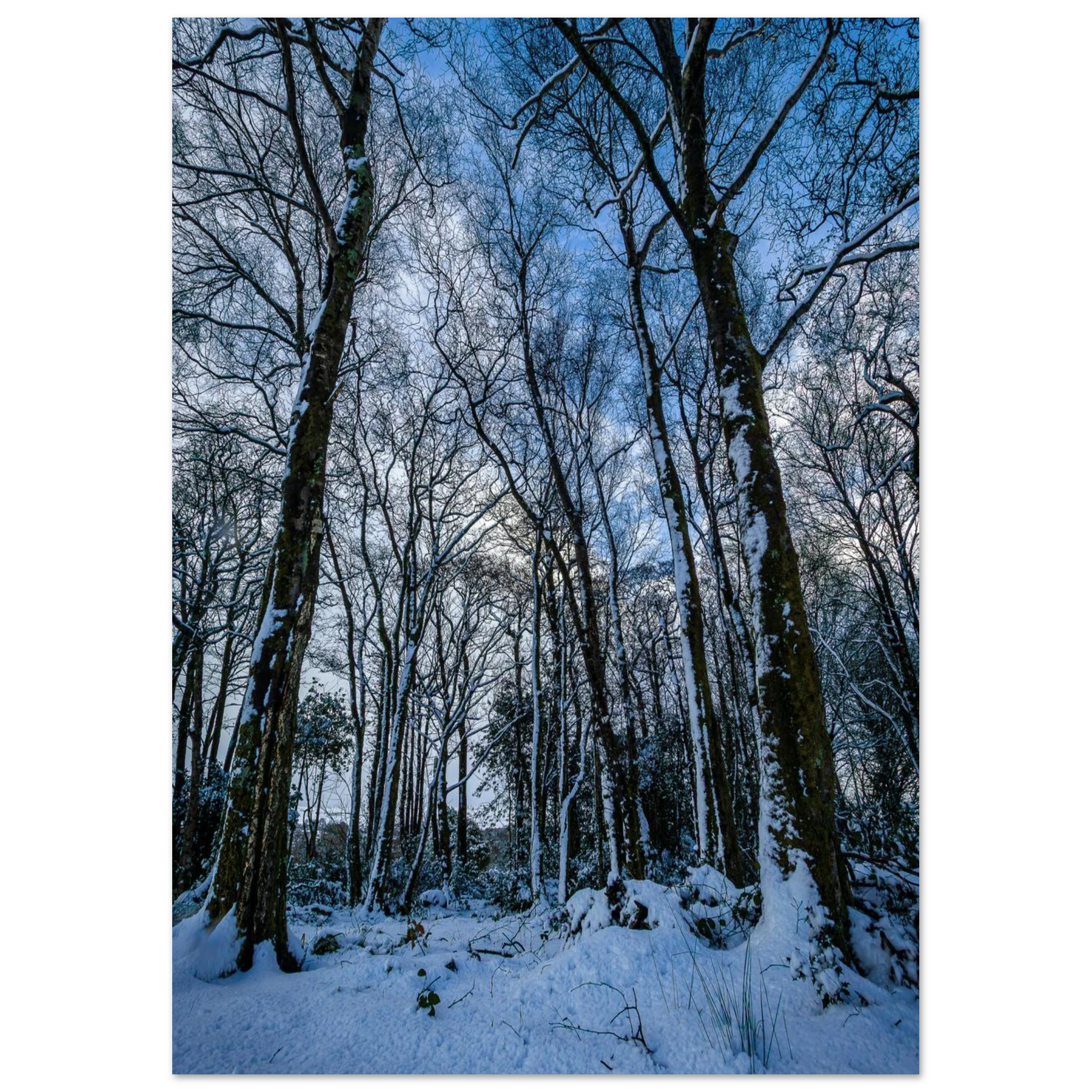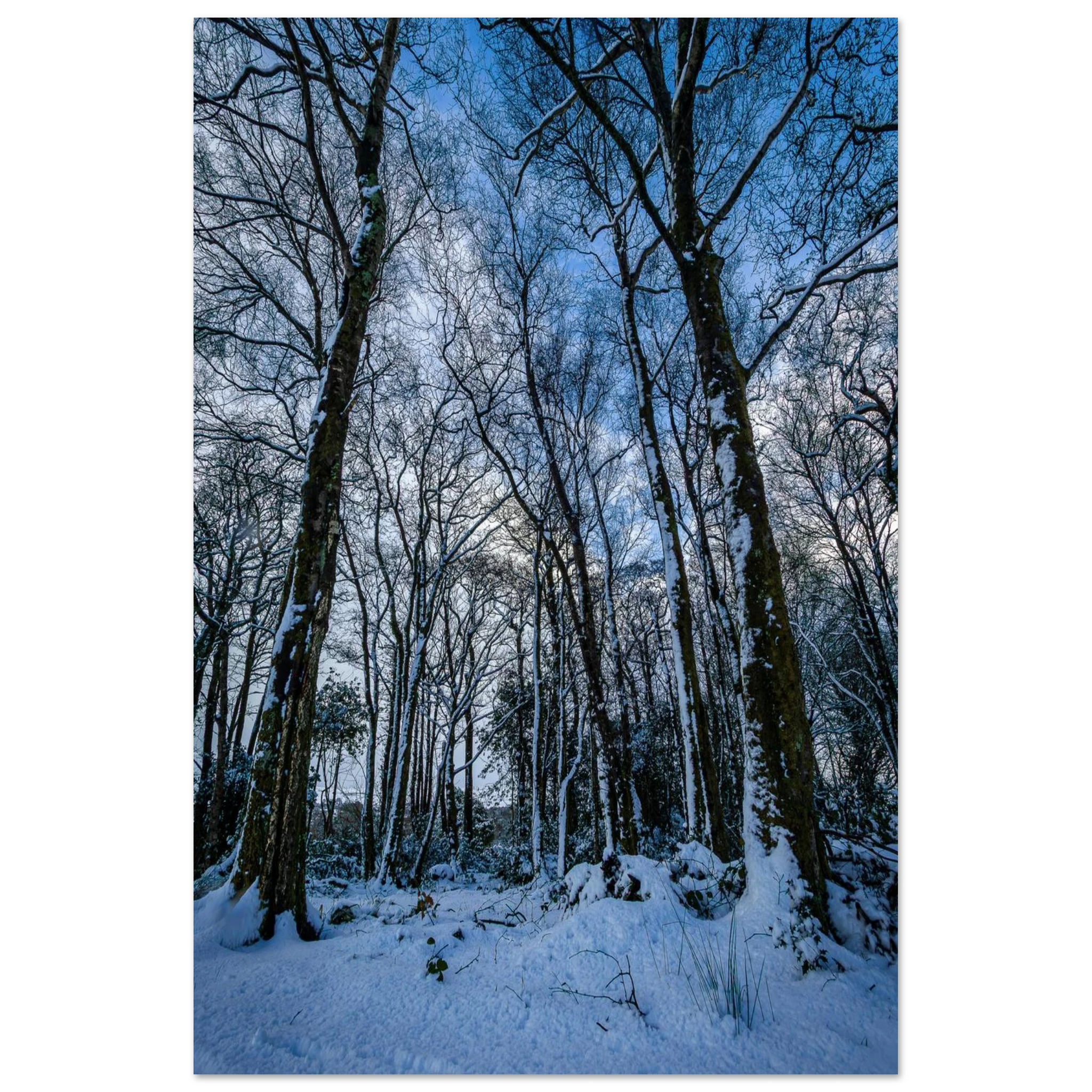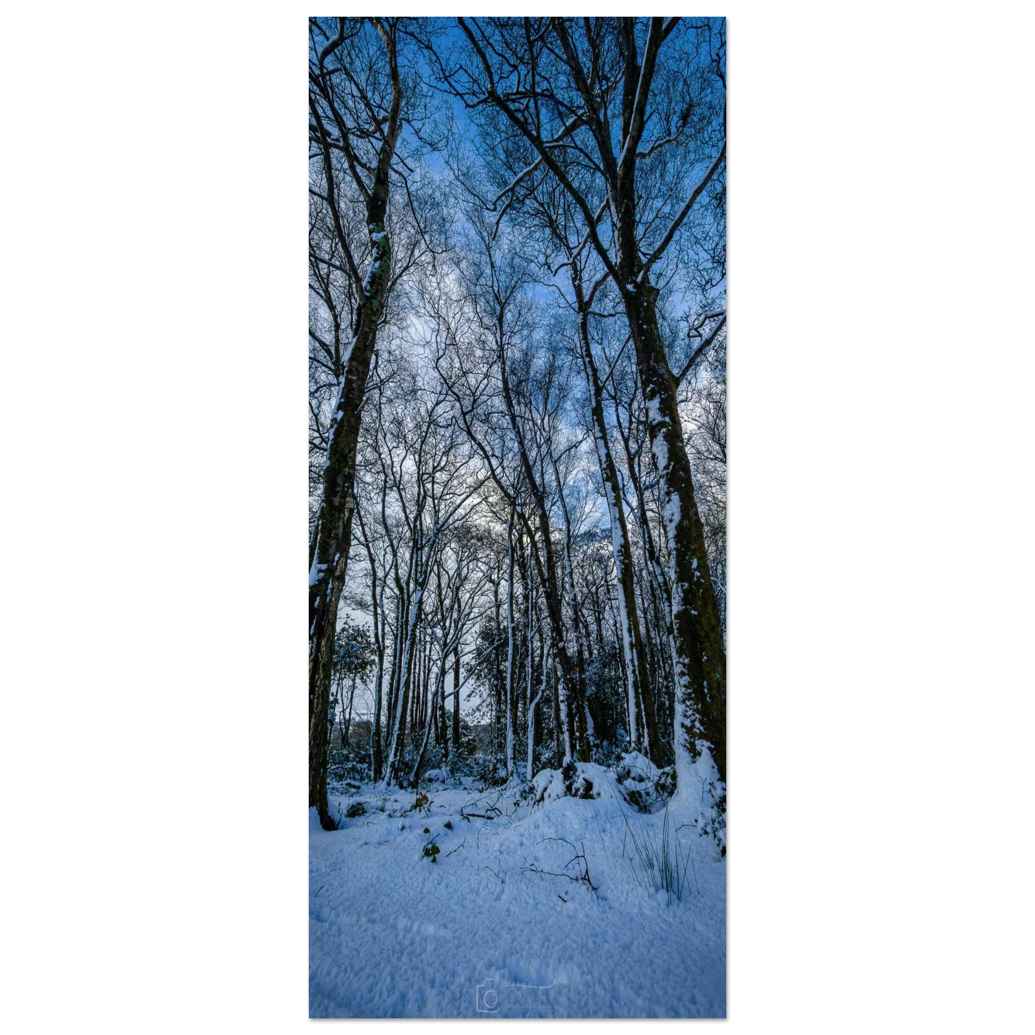The Entrance to Narnia captures the stillness and wonder of a true winter escape. Snow-covered trees line a quiet path, leading toward a mountain backdrop dusted in winter white. A moment of magic, frozen in time.