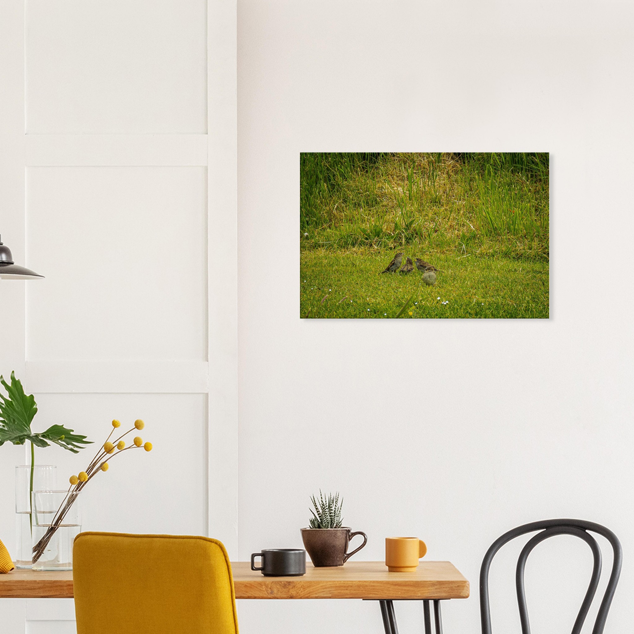 Bring the charm of nature into your home with our enchanting Eurasian Tree Sparrow Chicks canvas print. Captured during a delightful photography session, this piece showcases the playful moments of the young sparrows as they explore their surroundings. The lively chirping of these adorable chicks fills the air, creating a cheerful and rhythmic ambiance that’s sure to uplift any space. Our canvas prints are made from a durable cotton-polyester blend and responsibly sourced FSC-certified wood stretcher bars, ensuring a high-quality finish that enhances the texture and natural look of the artwork.