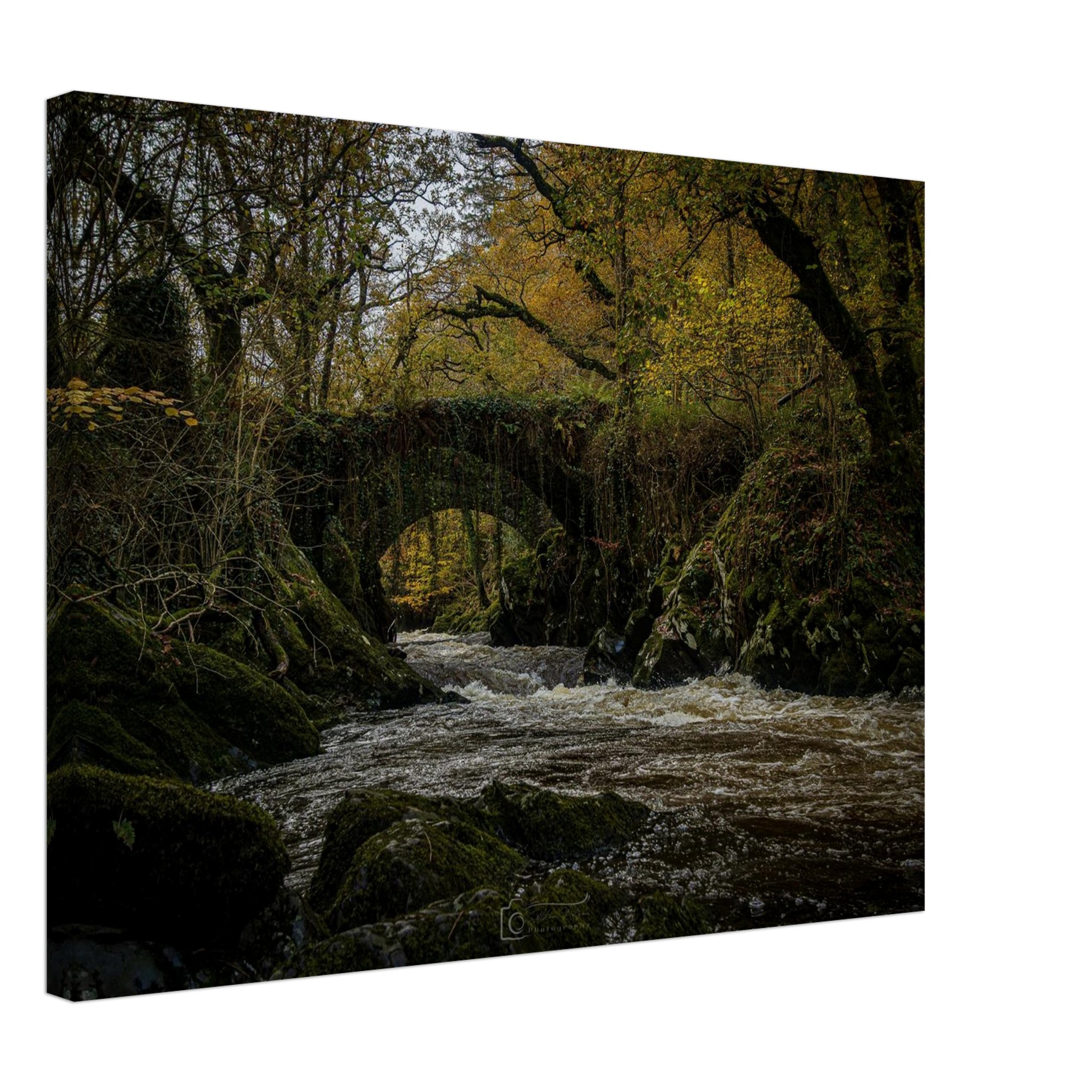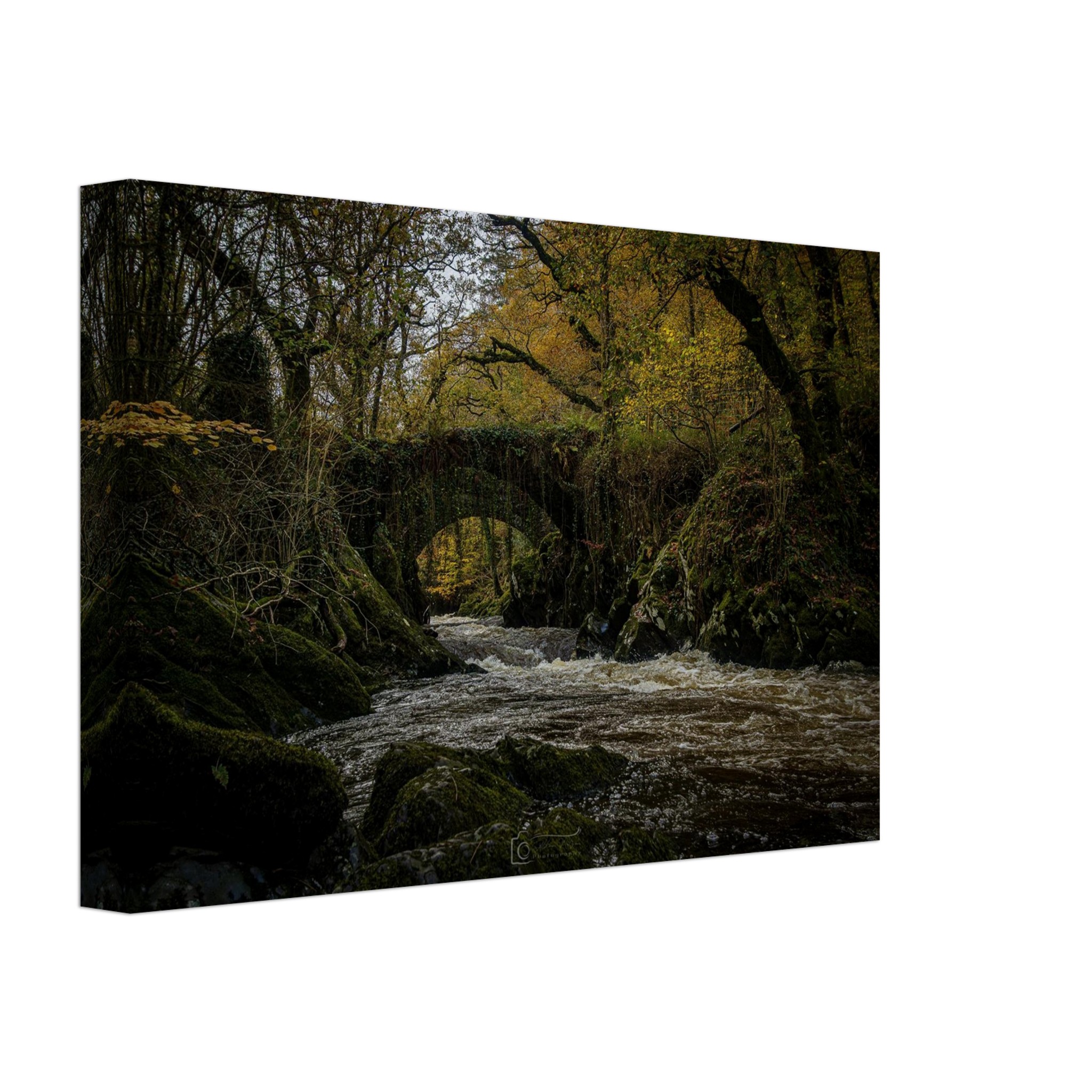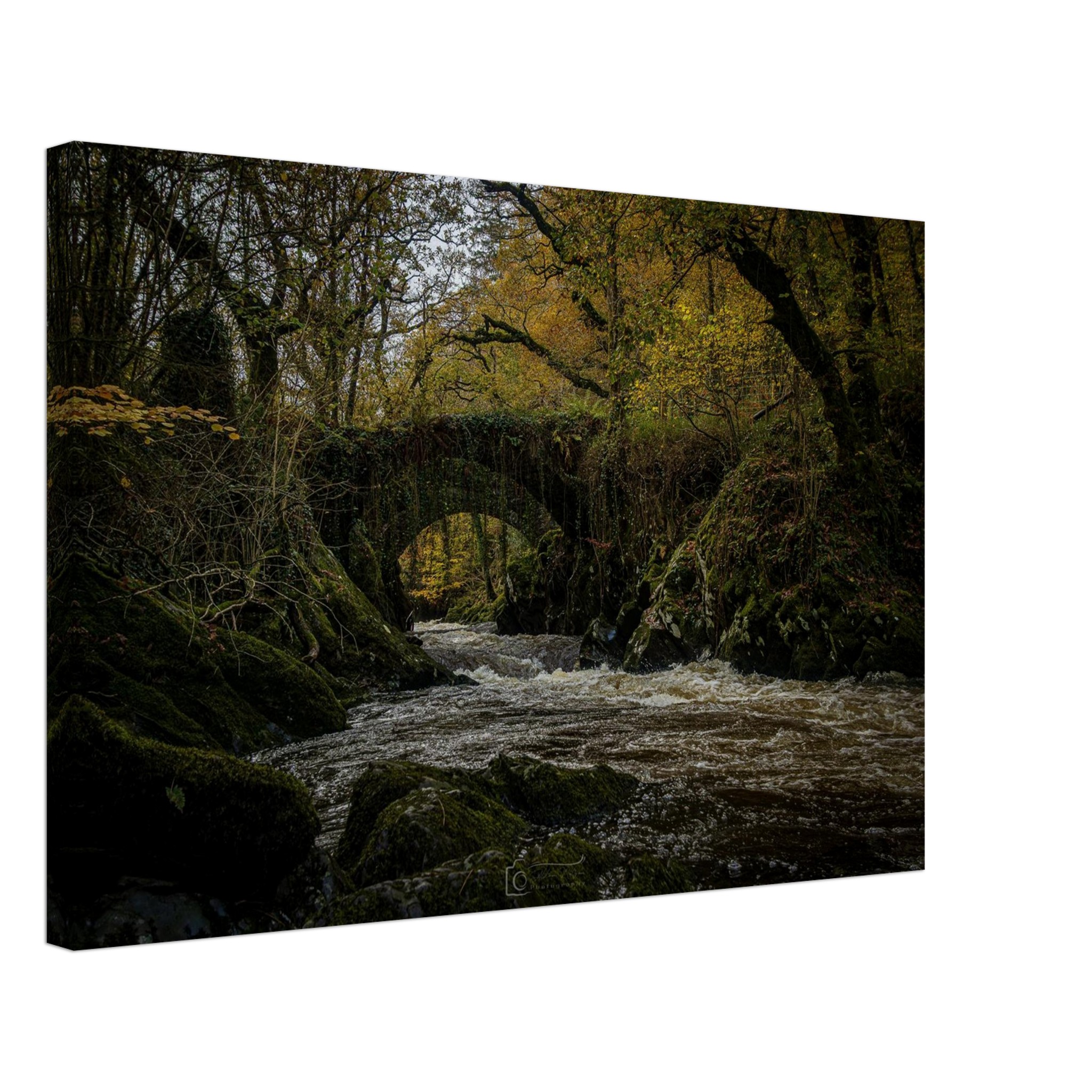 Elevate your living space and celebrate the beauty of nature with this exquisite canvas print of Foreboding Autumnal Roman Packhorse Bridge Rapids. Order now to transform your walls!