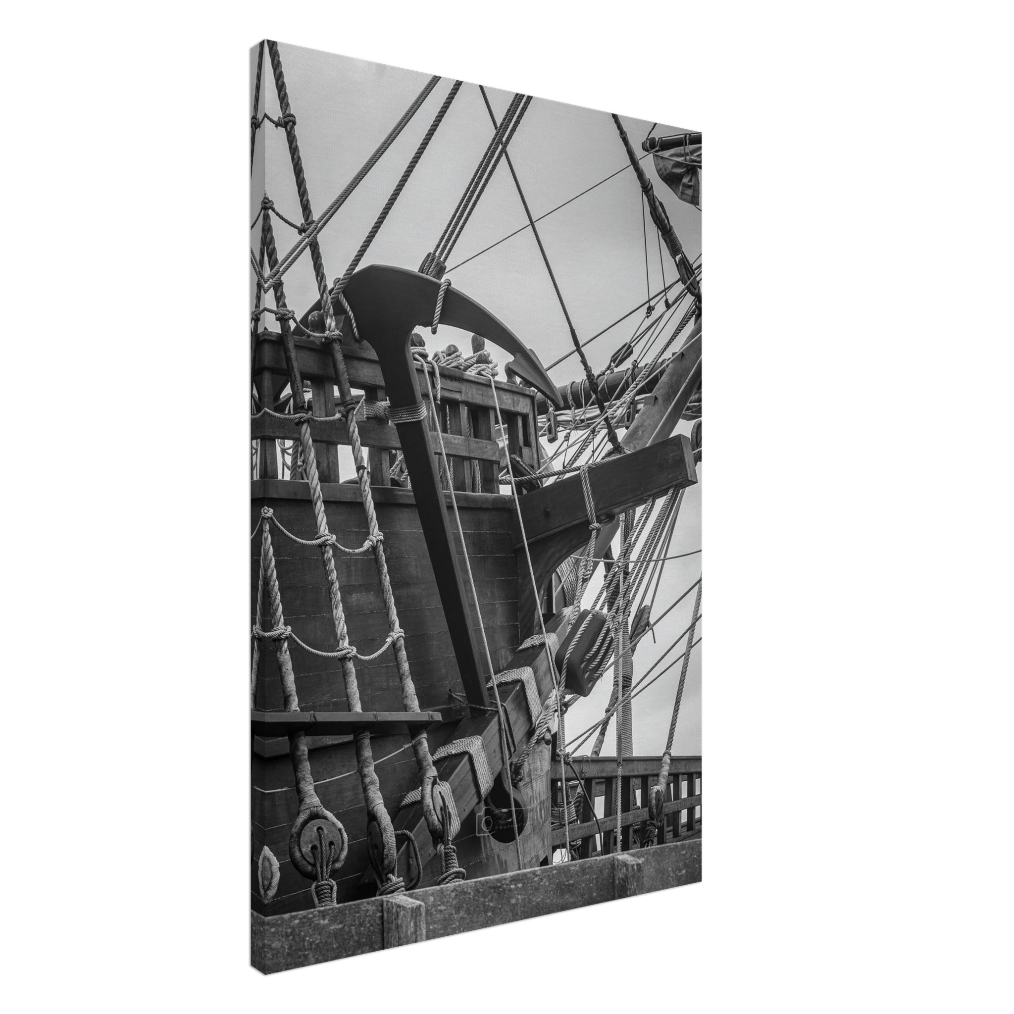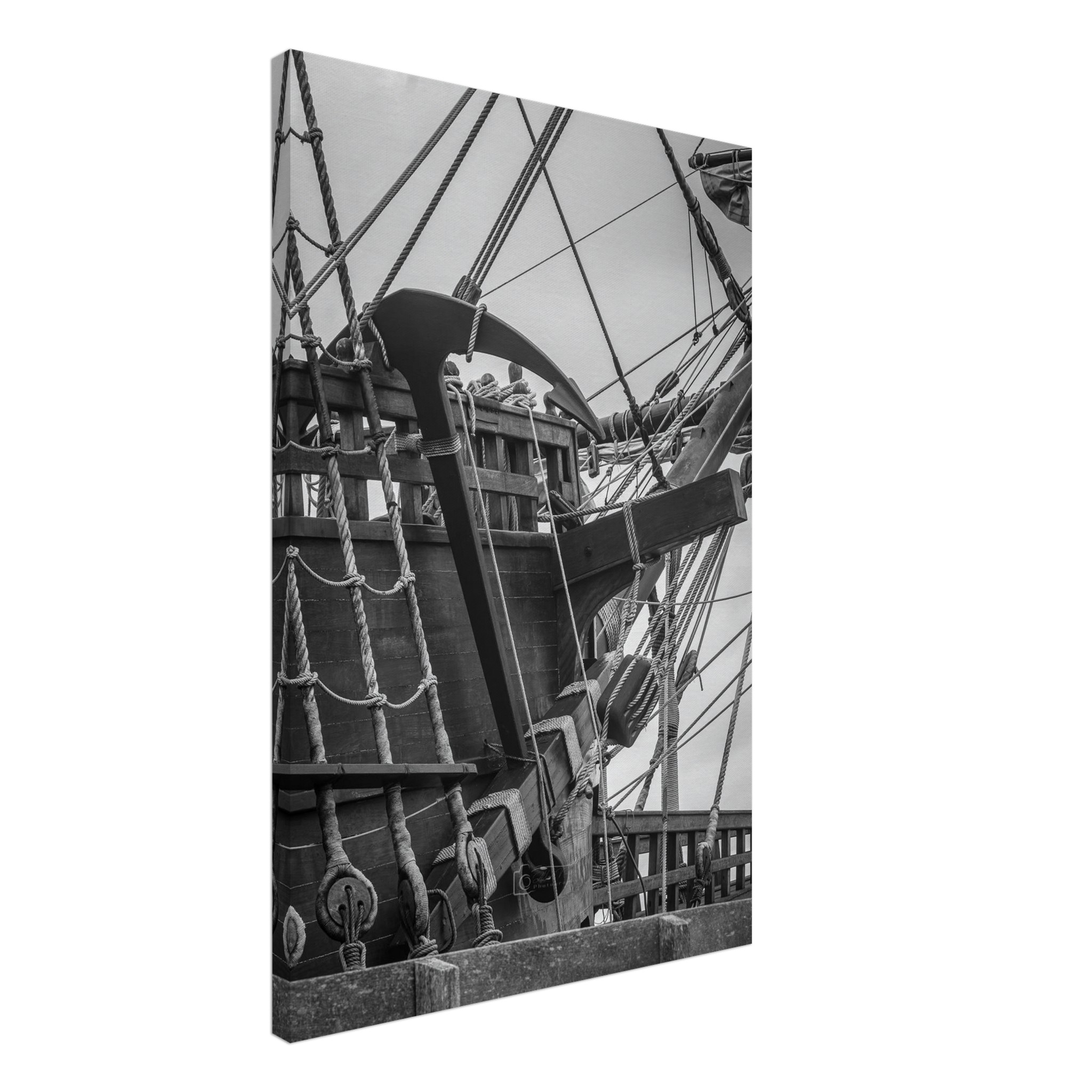 Capture the essence of maritime history with our stunning canvas print showcasing the Galeón Andalucía Ship Anchor Black & White, a remarkable replica Spanish ship from the XVI to XVIII centuries. Beautifully moored in Caernarfon Port and surrounded by the breathtaking landscapes of Snowdonia, this black and white photograph offers a glimpse into the grandeur of maritime heritage. With an impressive length of 55 metres, crafted from quality iroko and pine wood across six detailed decks, this artwork is perfect for maritime enthusiasts and those looking to add a touch of nautical elegance.