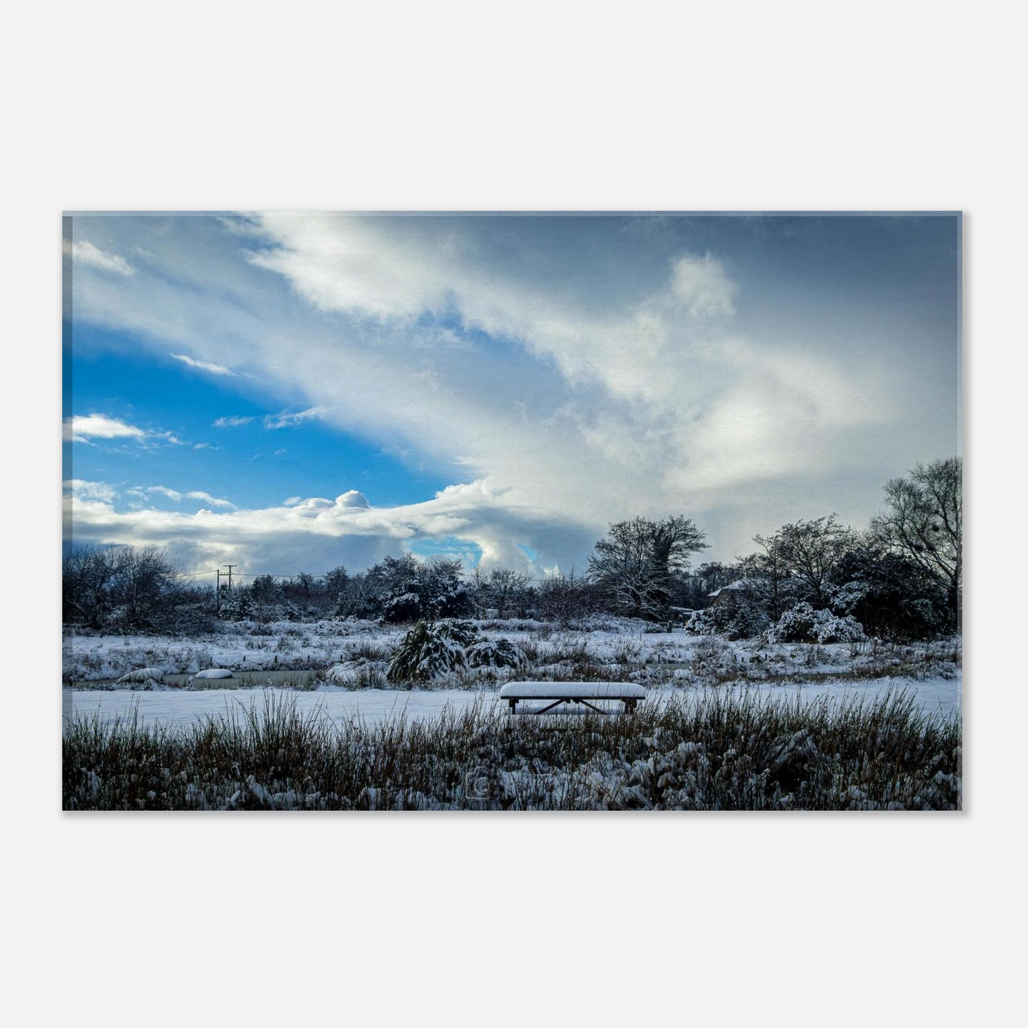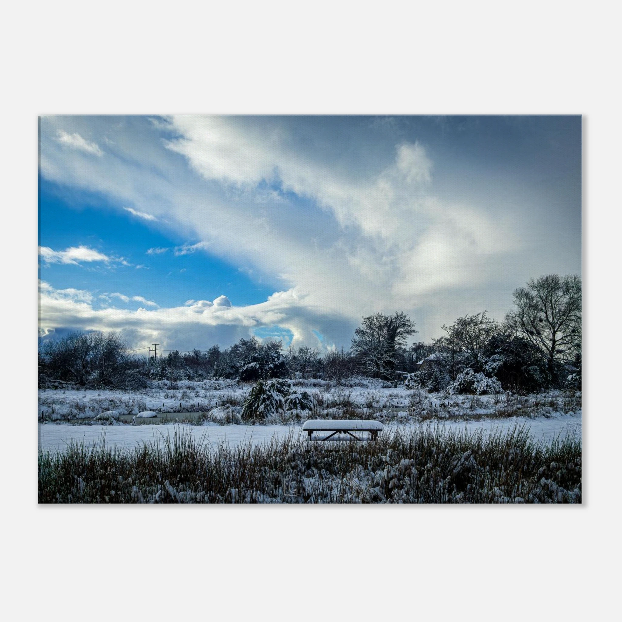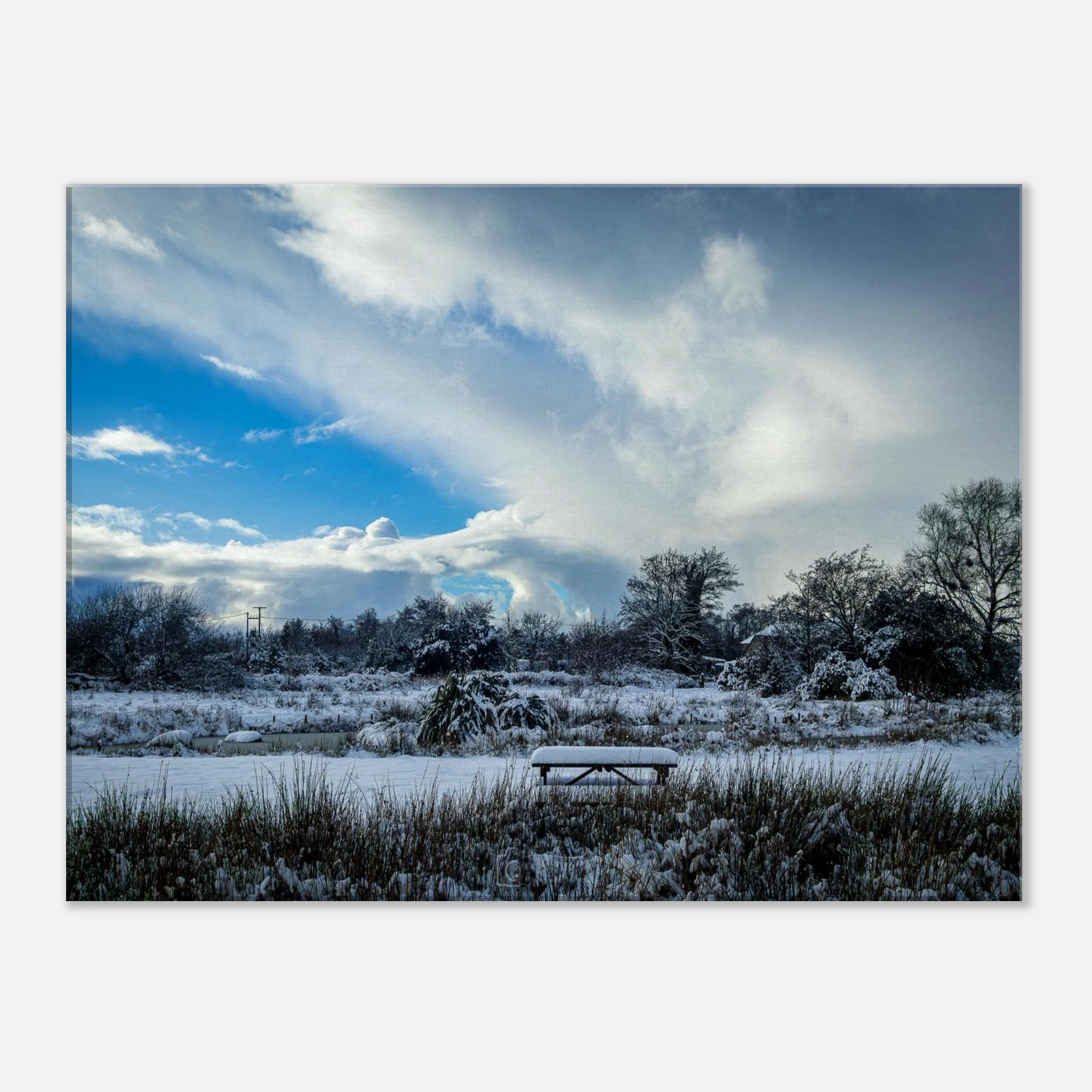 Elevate your living space and celebrate the beauty of nature with this exquisite canvas print of Snowcapped Landscape of the Lakeside Views. Order now to transform your walls!