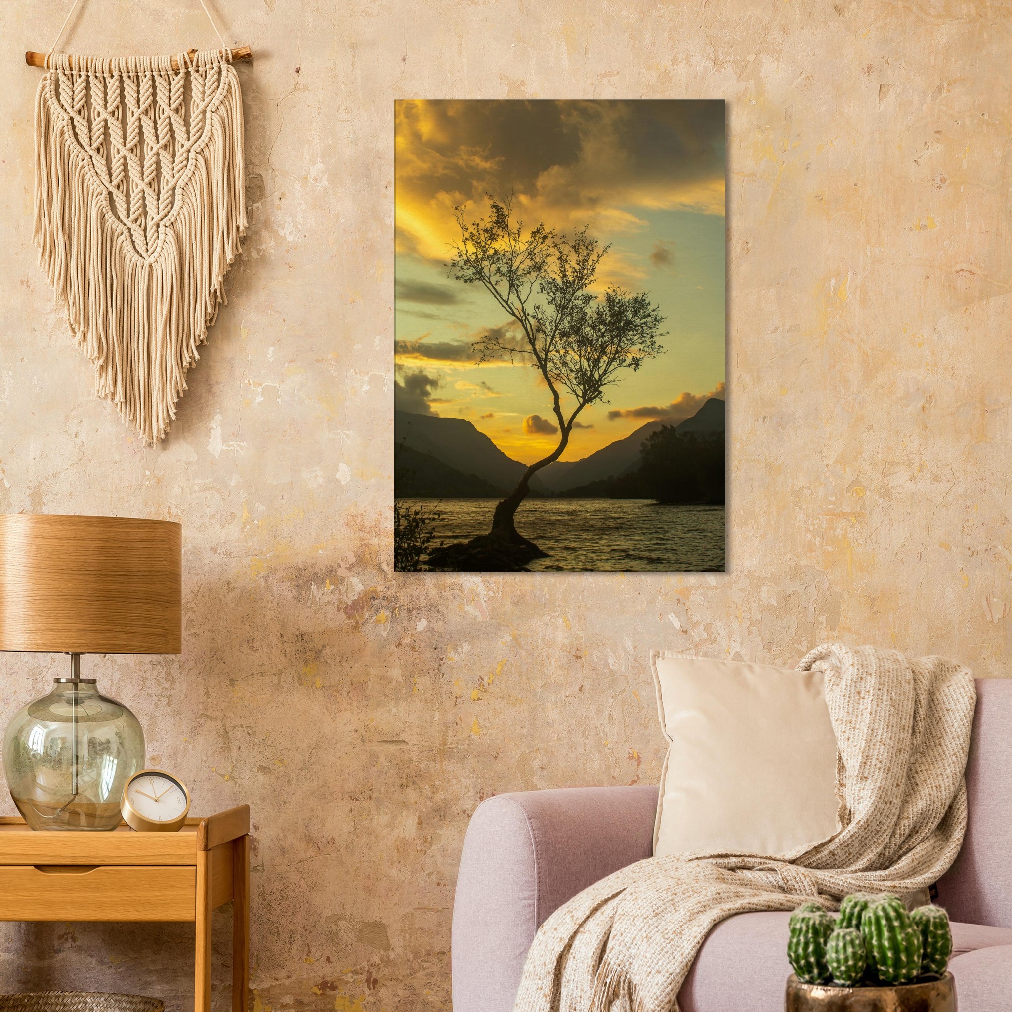 Immerse yourself in the serene beauty of nature with our stunning Tranquil Snowdonia Lonley Tree Sunrise Canvas Print. This artwork captures the breathtaking horizon view of Yr Wyddfa and Llyn Padarn, showcasing vibrant colors that reflect the tranquility of the Welsh landscape. Perfect for nature lovers and travelers, this piece evokes a sense of solitude and peace, ideal for any home or office space.