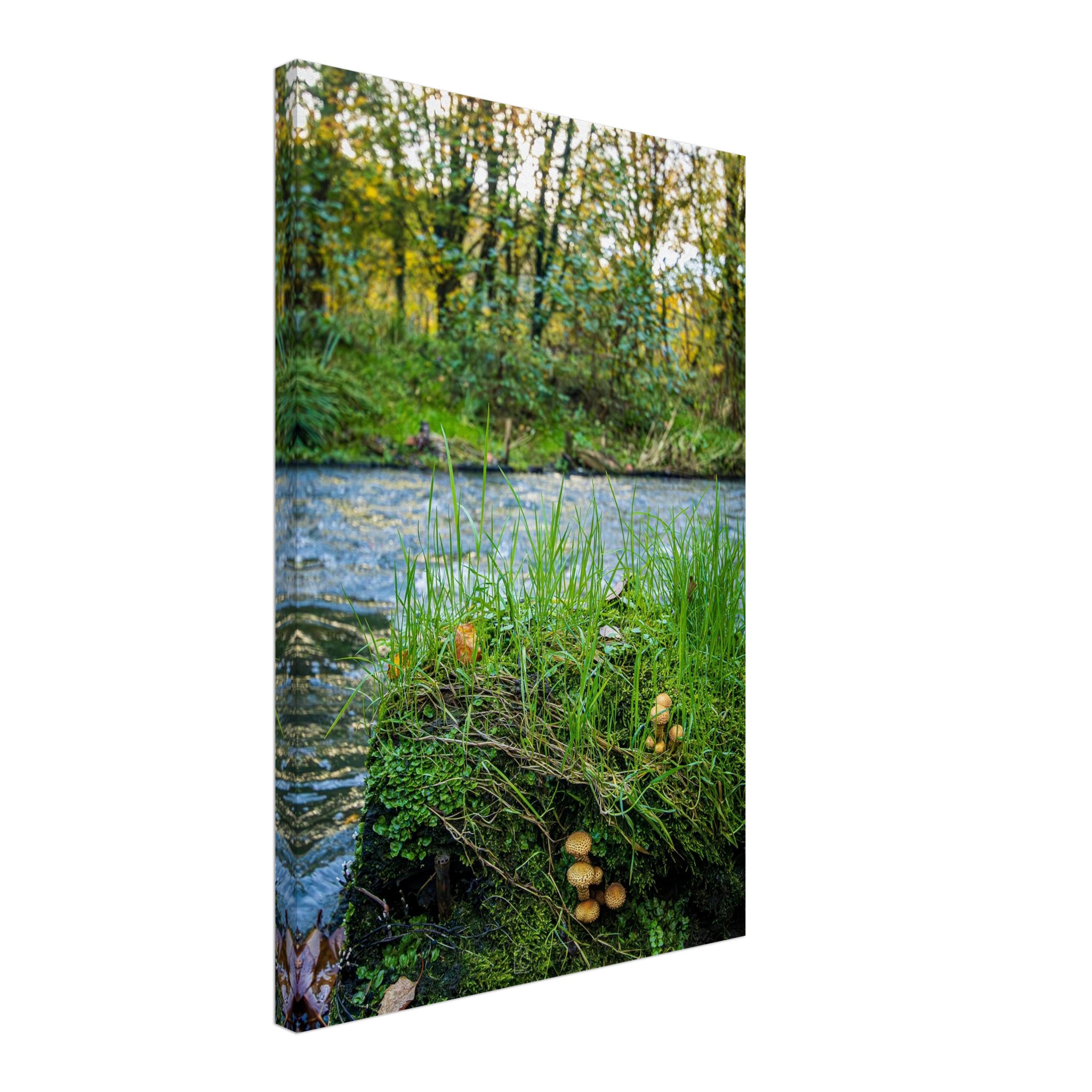 Elevate your living space and celebrate the beauty of nature with this exquisite canvas print of Mushrooms On River Irk Embankment. Order now to transform your walls!