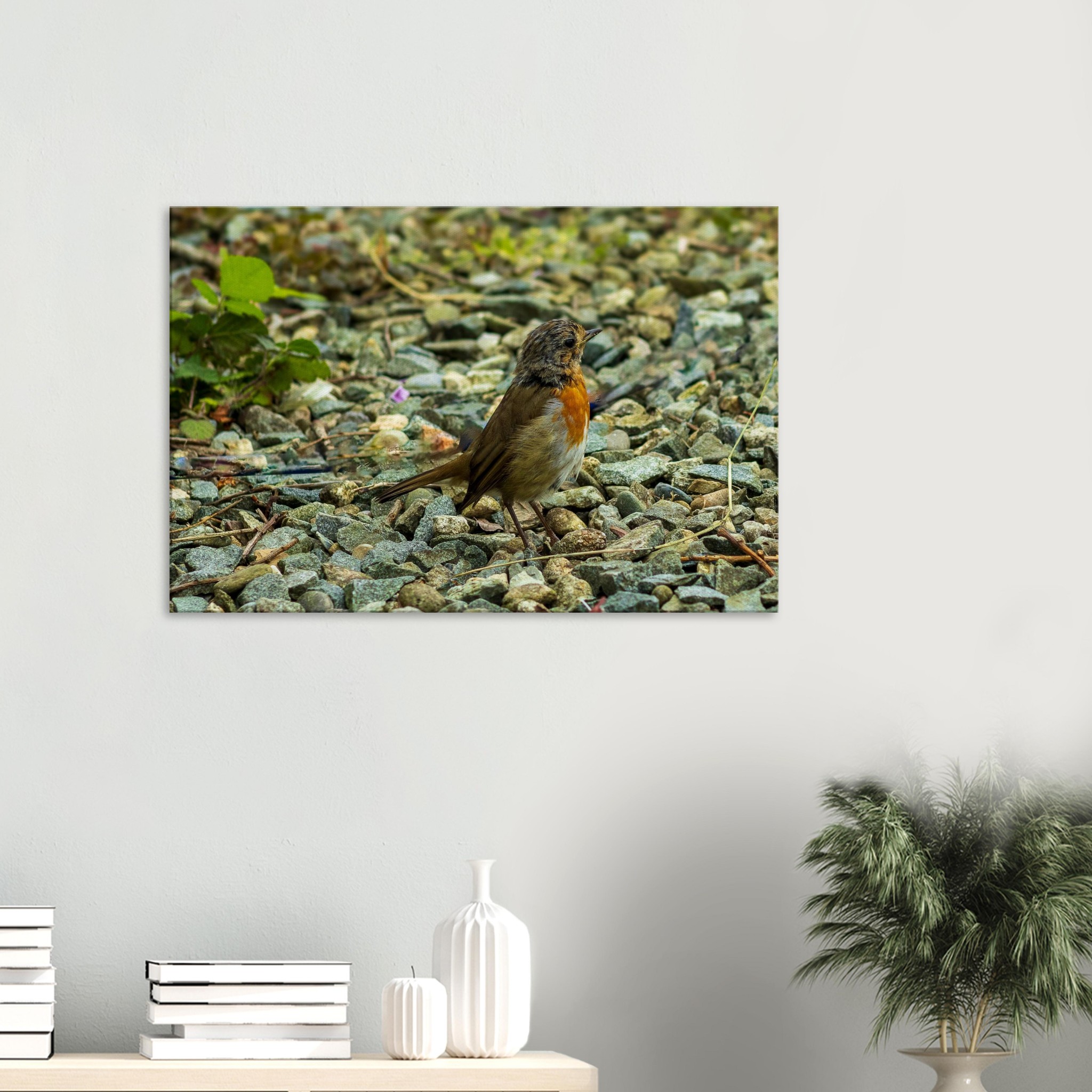 Bring the enchanting beauty of nature into your home with our stunning Baby Robin On The Lookout Canvas Print. This exquisite artwork captures a delightful baby robin red breast bird, carefully surveying its surroundings as it searches for lunch at the picturesque caravan park of North Wales. Perfect for bird lovers and nature enthusiasts alike, this canvas print adds a touch of serenity to any space.