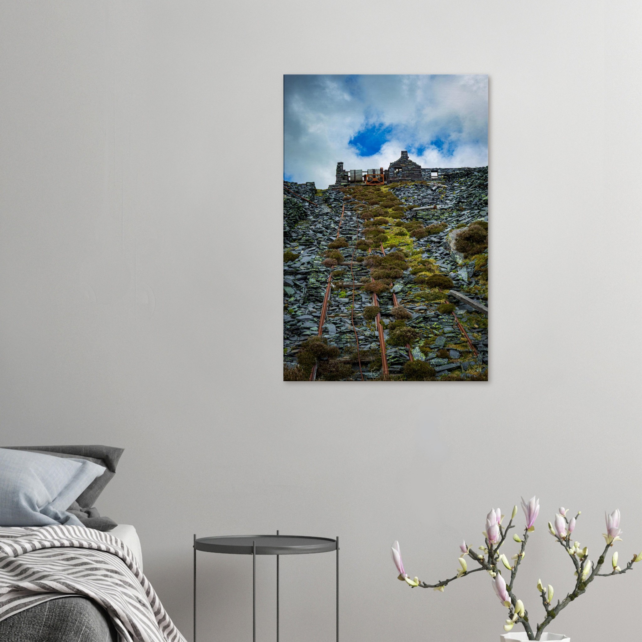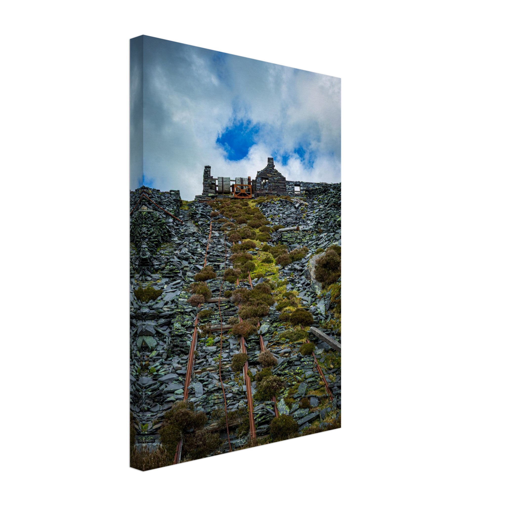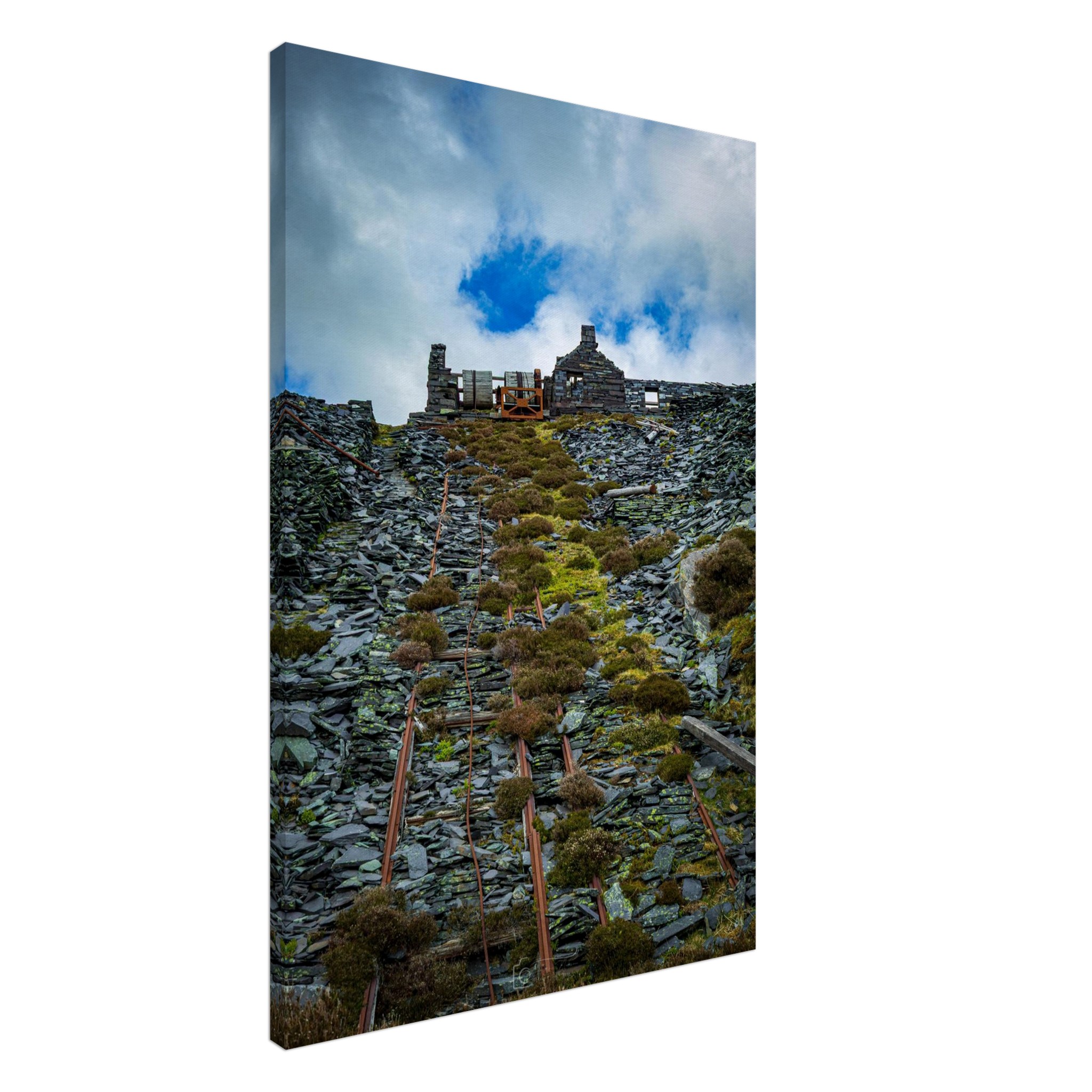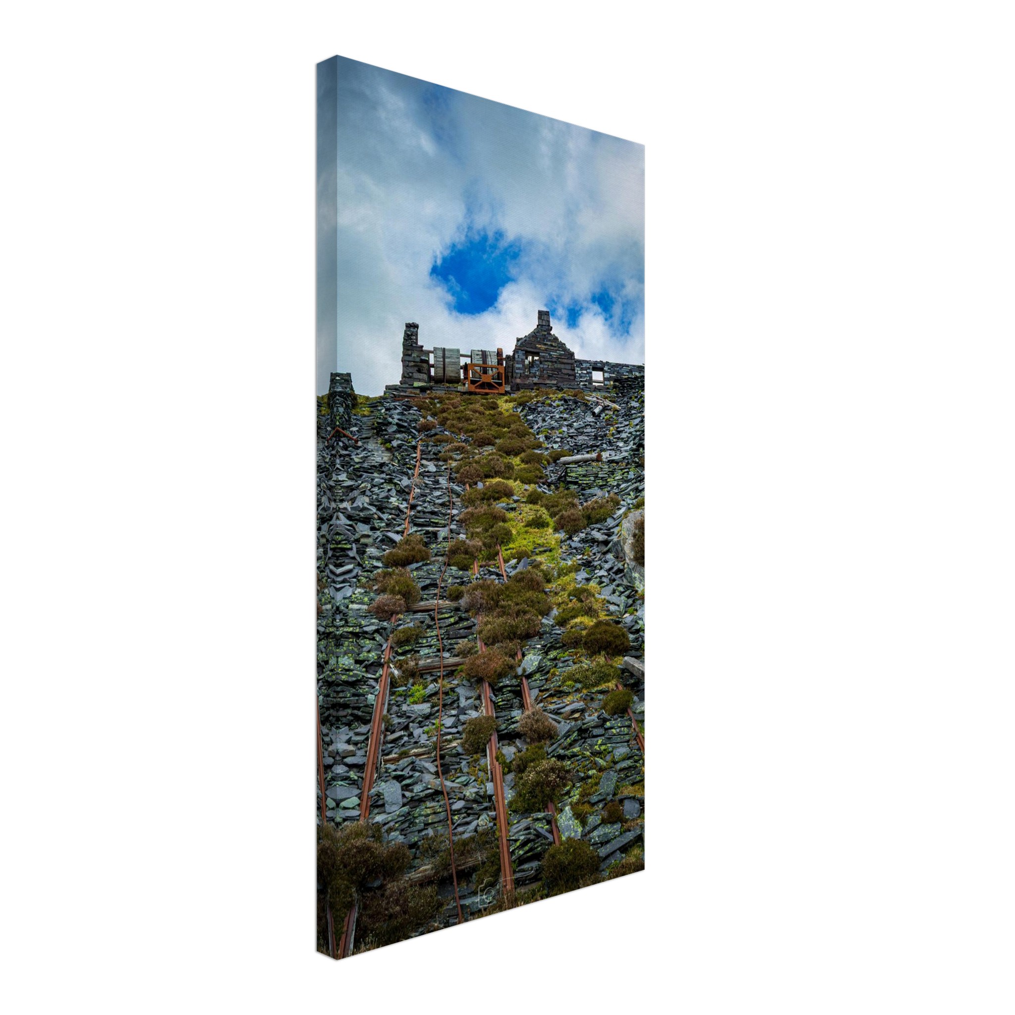 Transform your space with our captivating Ropes of Dinorwig Quarry, showcasing the stark beauty of industrial outbuilding views from the historic slate quarry. This unique artwork captures the remnants of towering machinery and weathered ruins, telling a story of a once-thriving industry amidst breathtaking natural landscapes. Perfect for history buffs and art lovers alike, this piece will evoke deep conversations and admiration from all who see it.