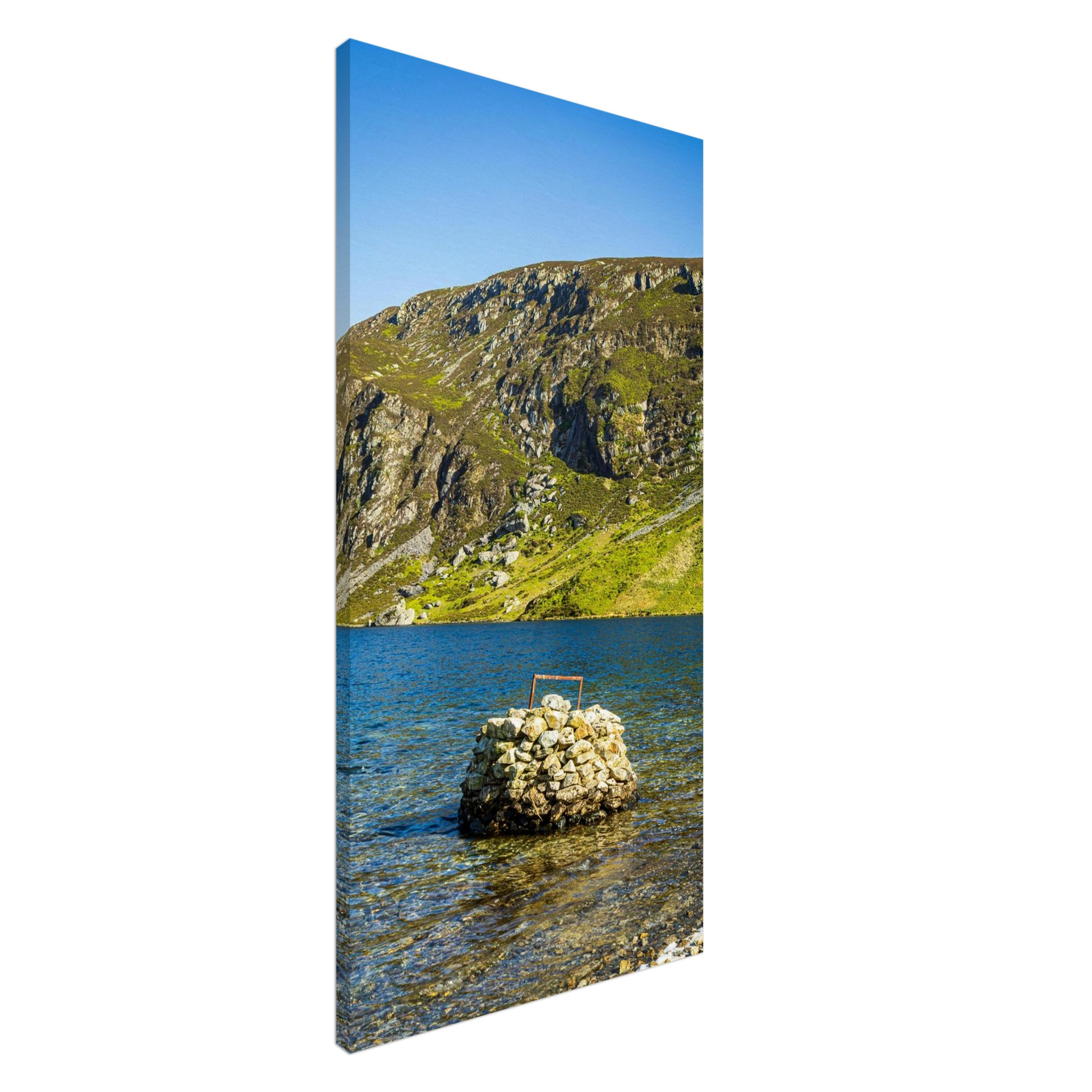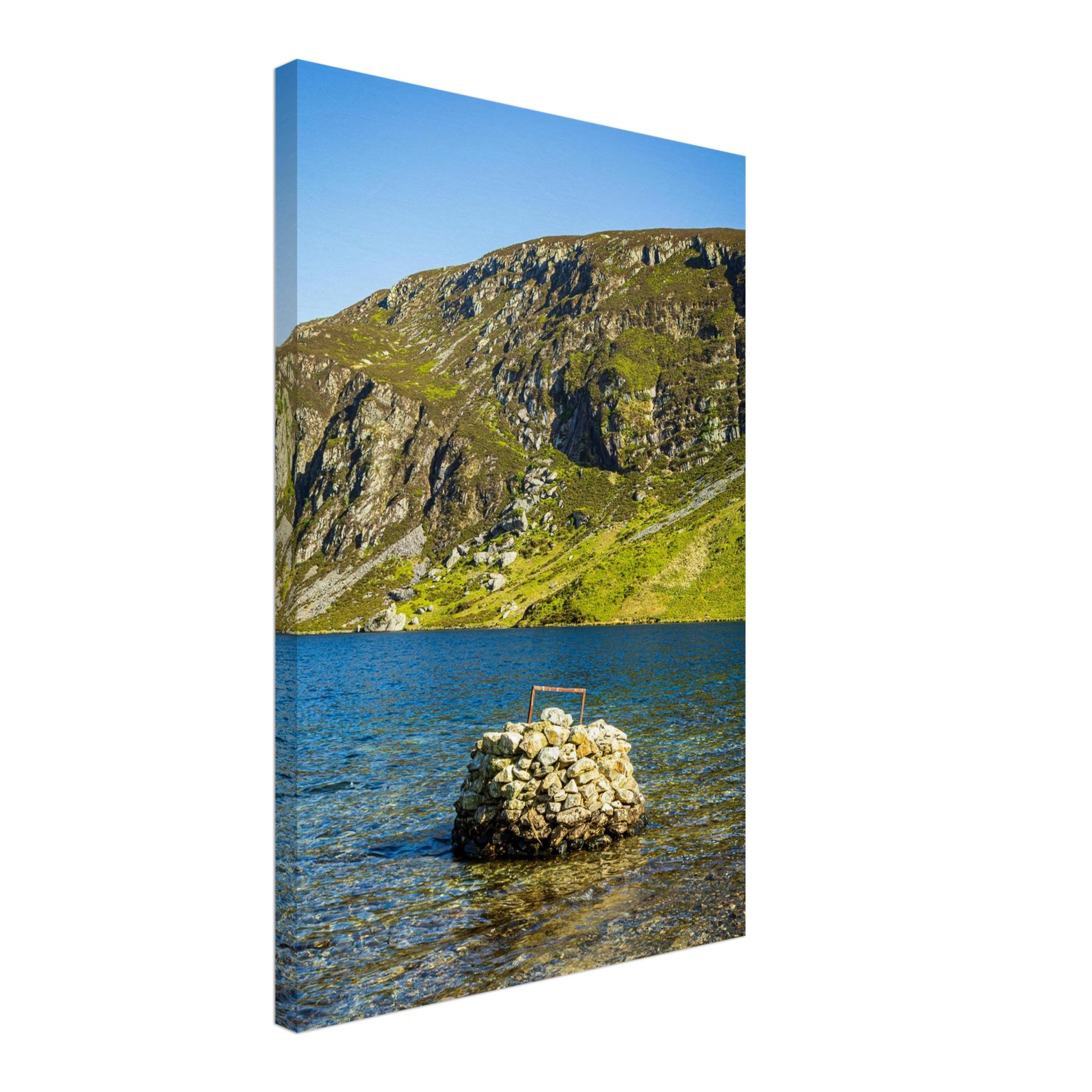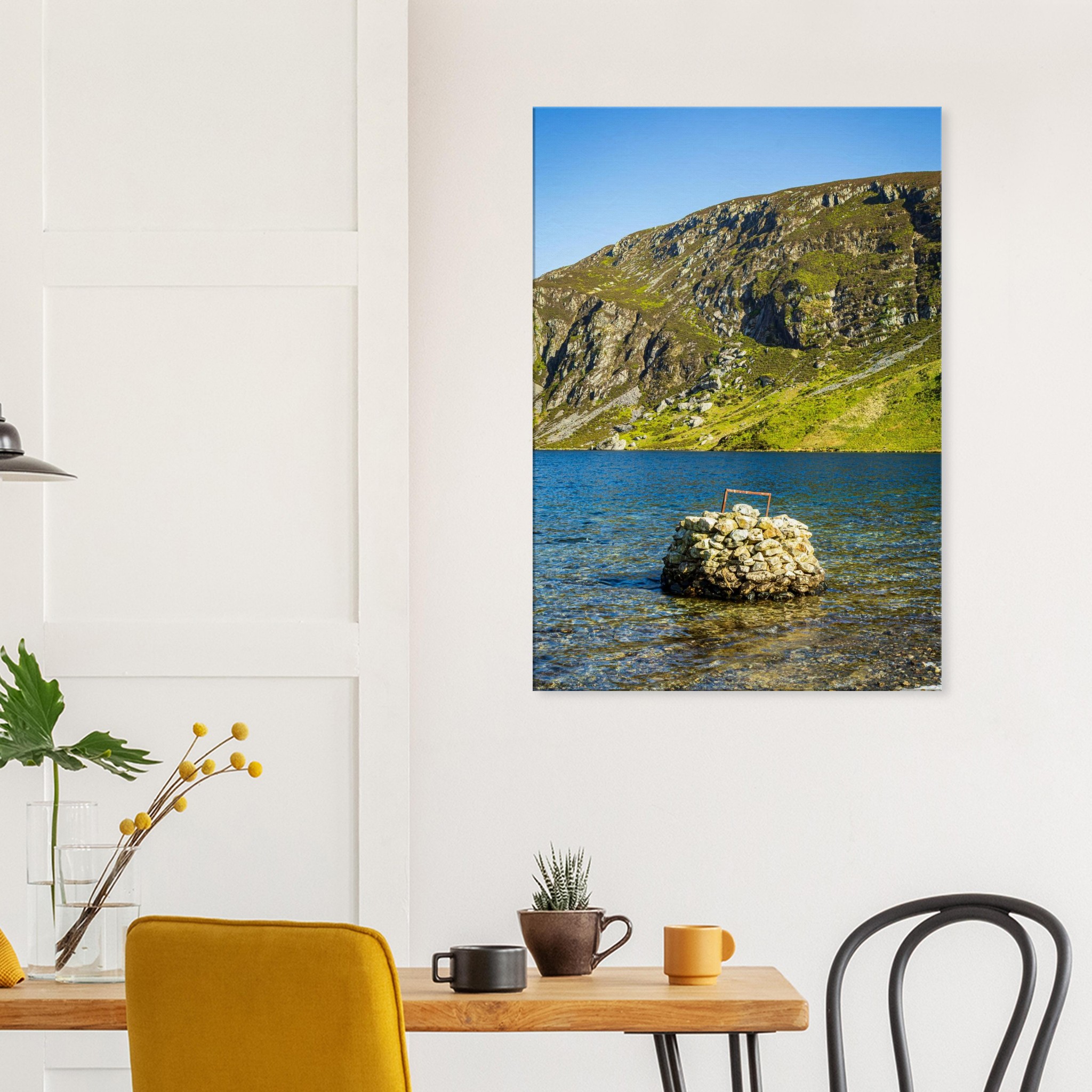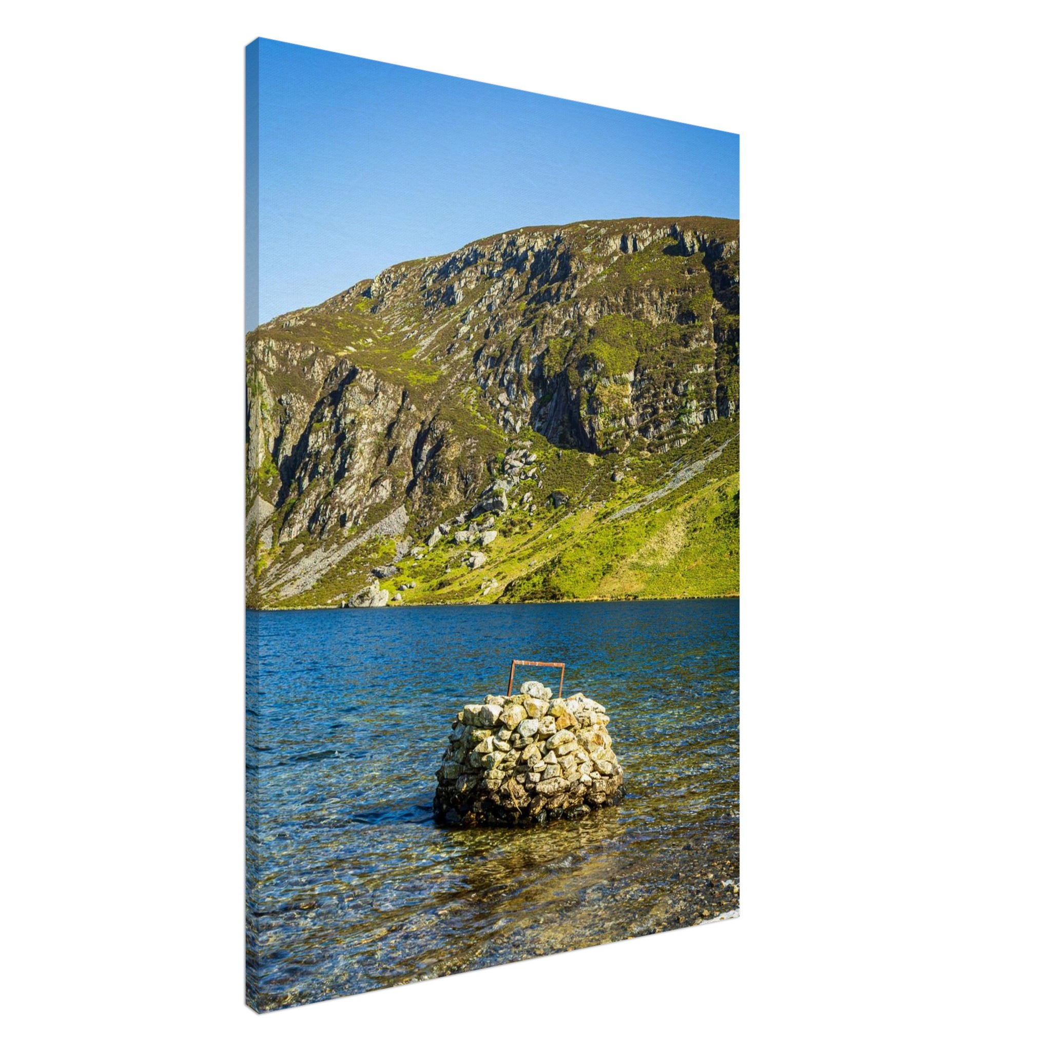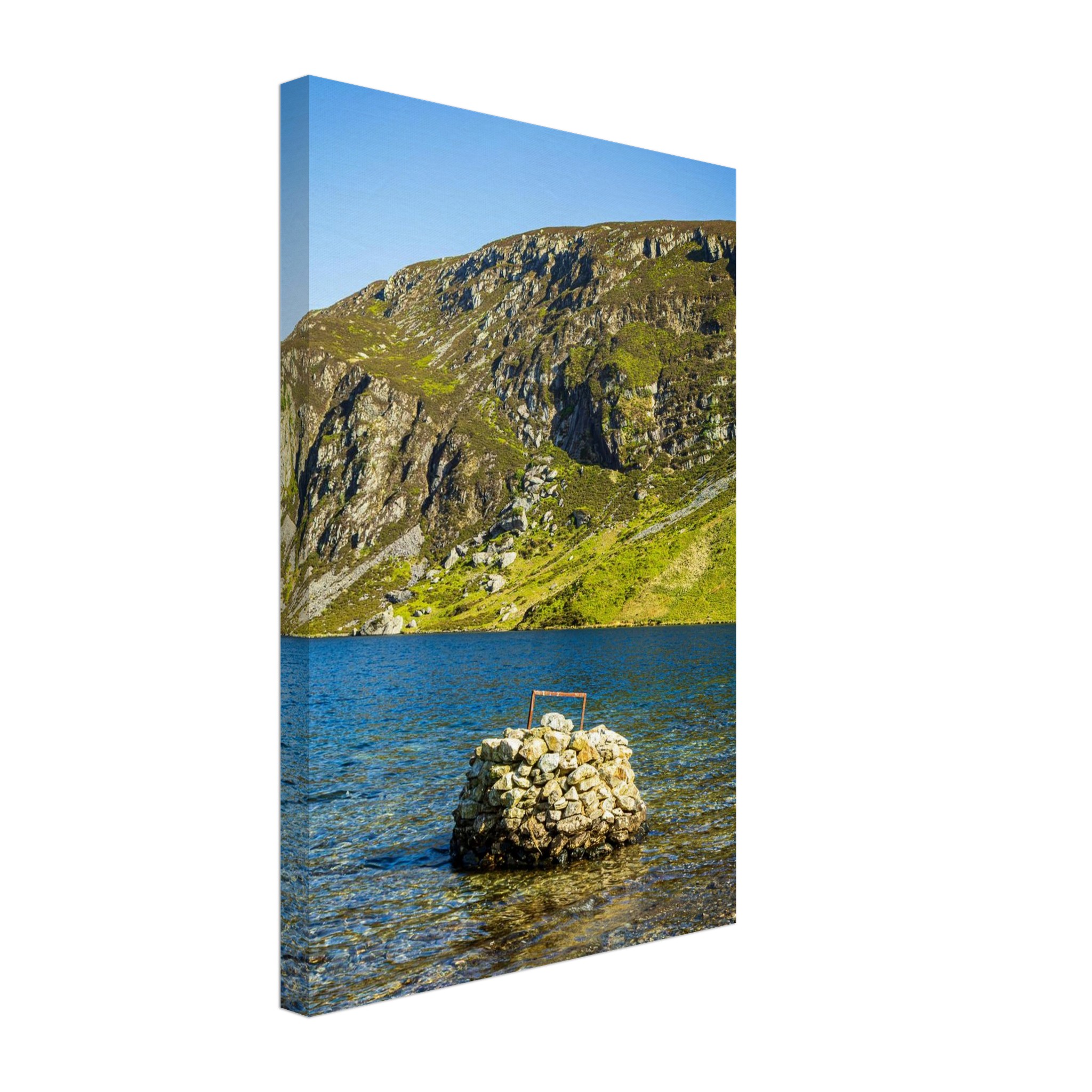 Transform your space with our breathtaking canvas print featuring the stunning structures built in Llyn Cwm Dulyn crystal clear lake within Snowdonia National Park. Each piece captures this breathtaking landscape’s timeless beauty and enhanced texture, offering an immersive art experience perfect for any nature lover’s home.