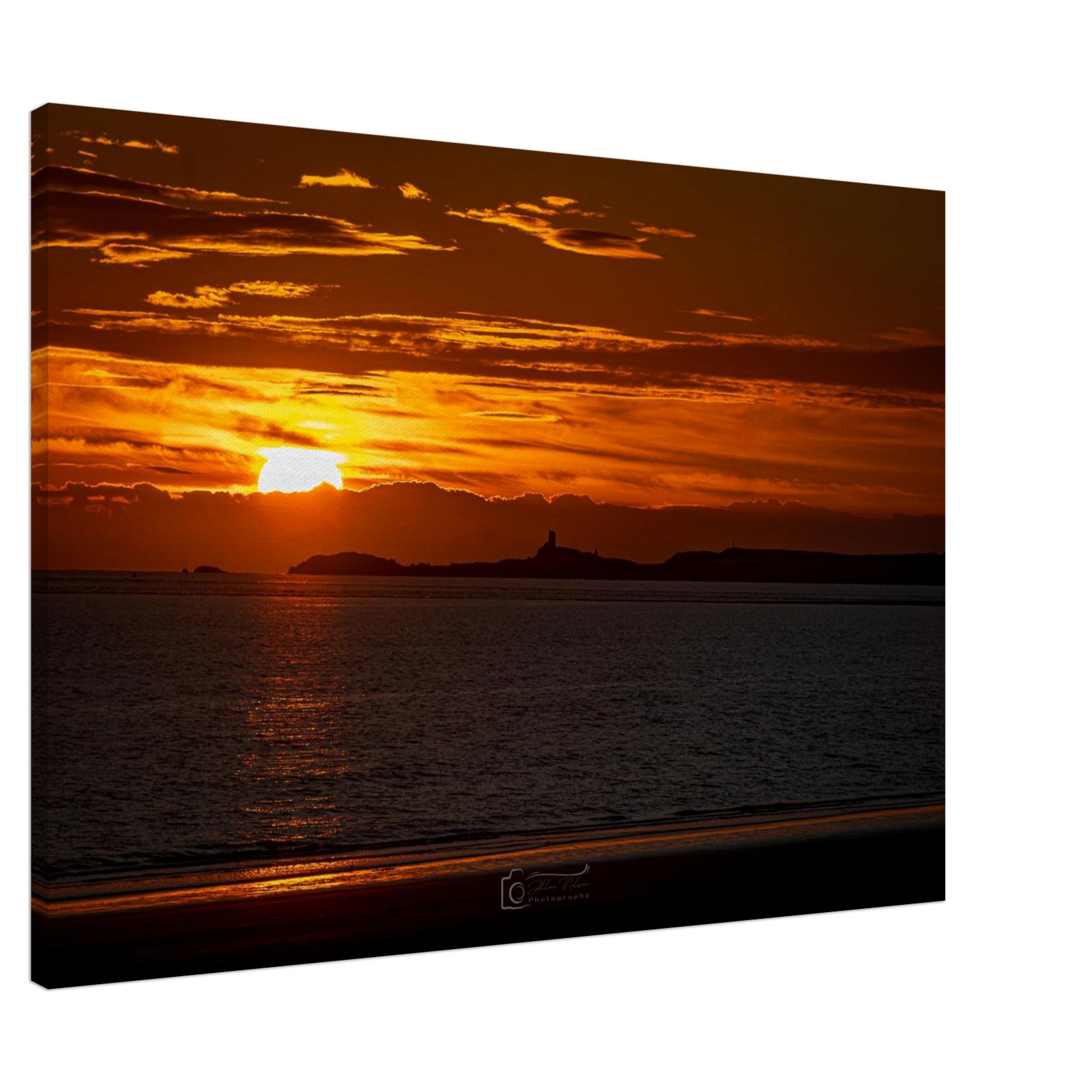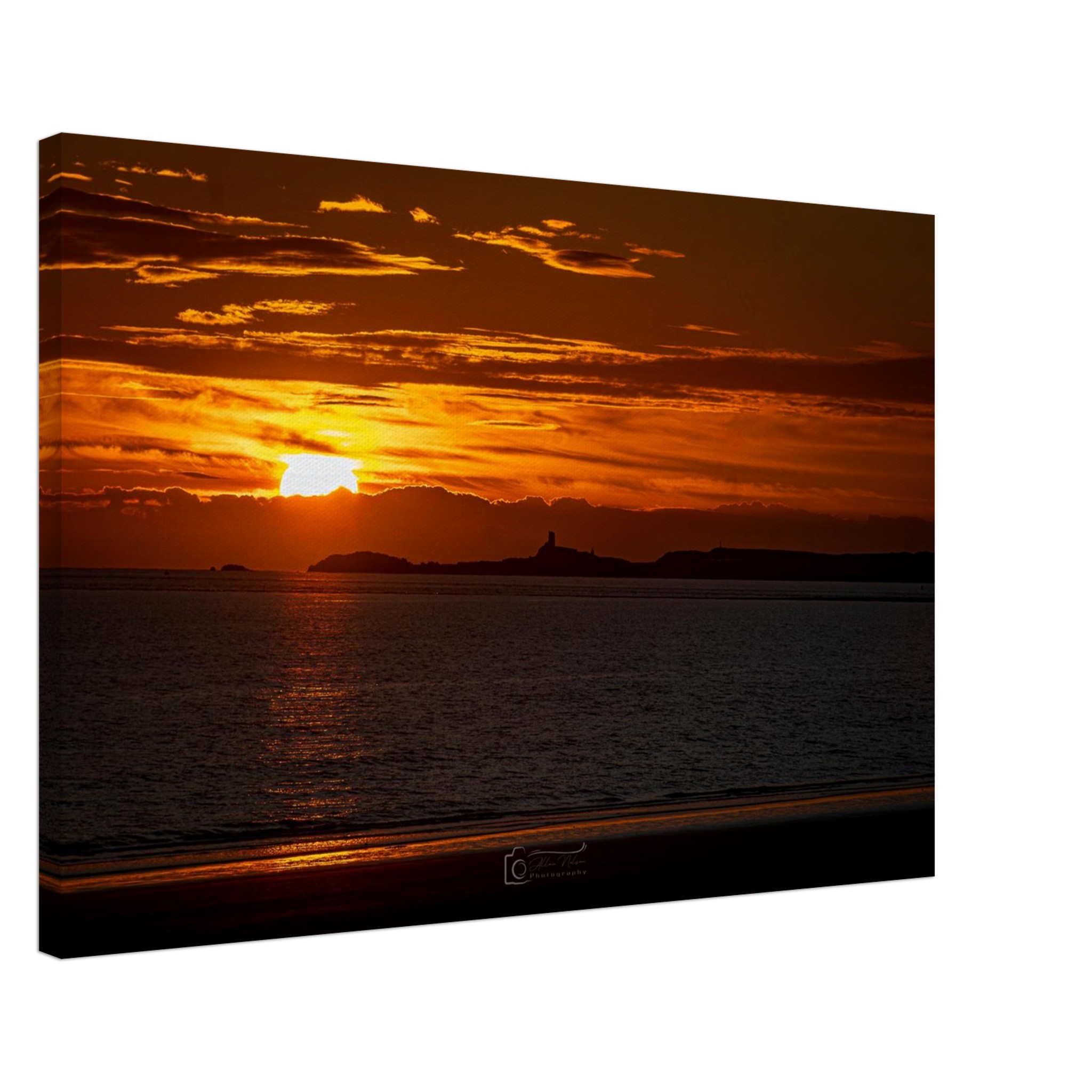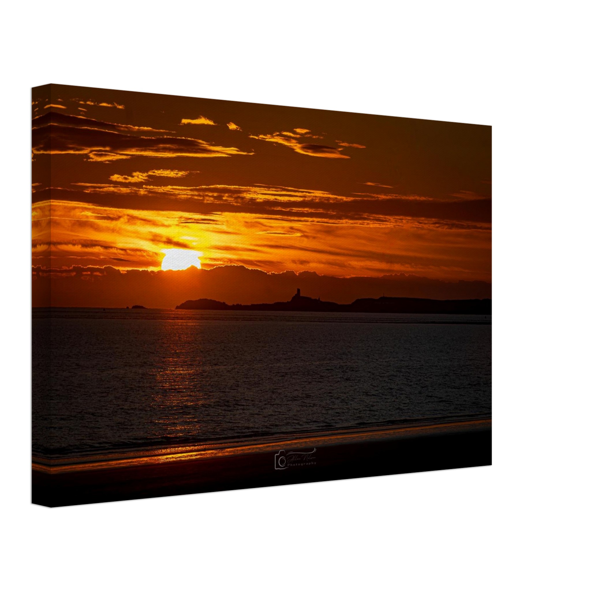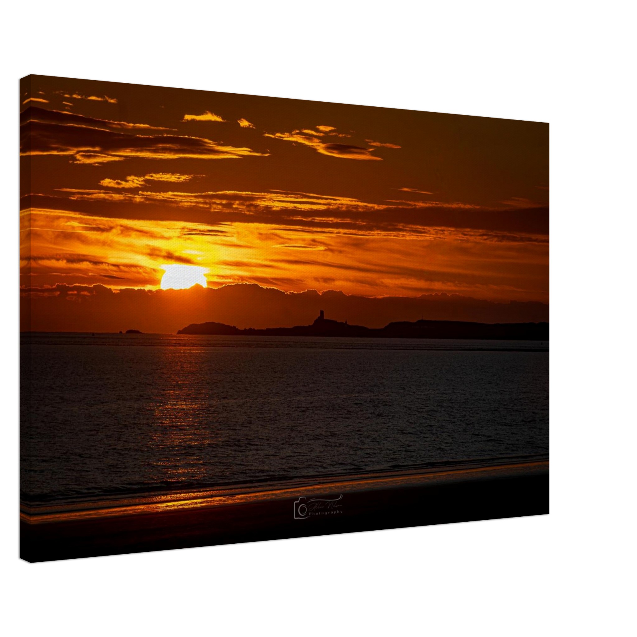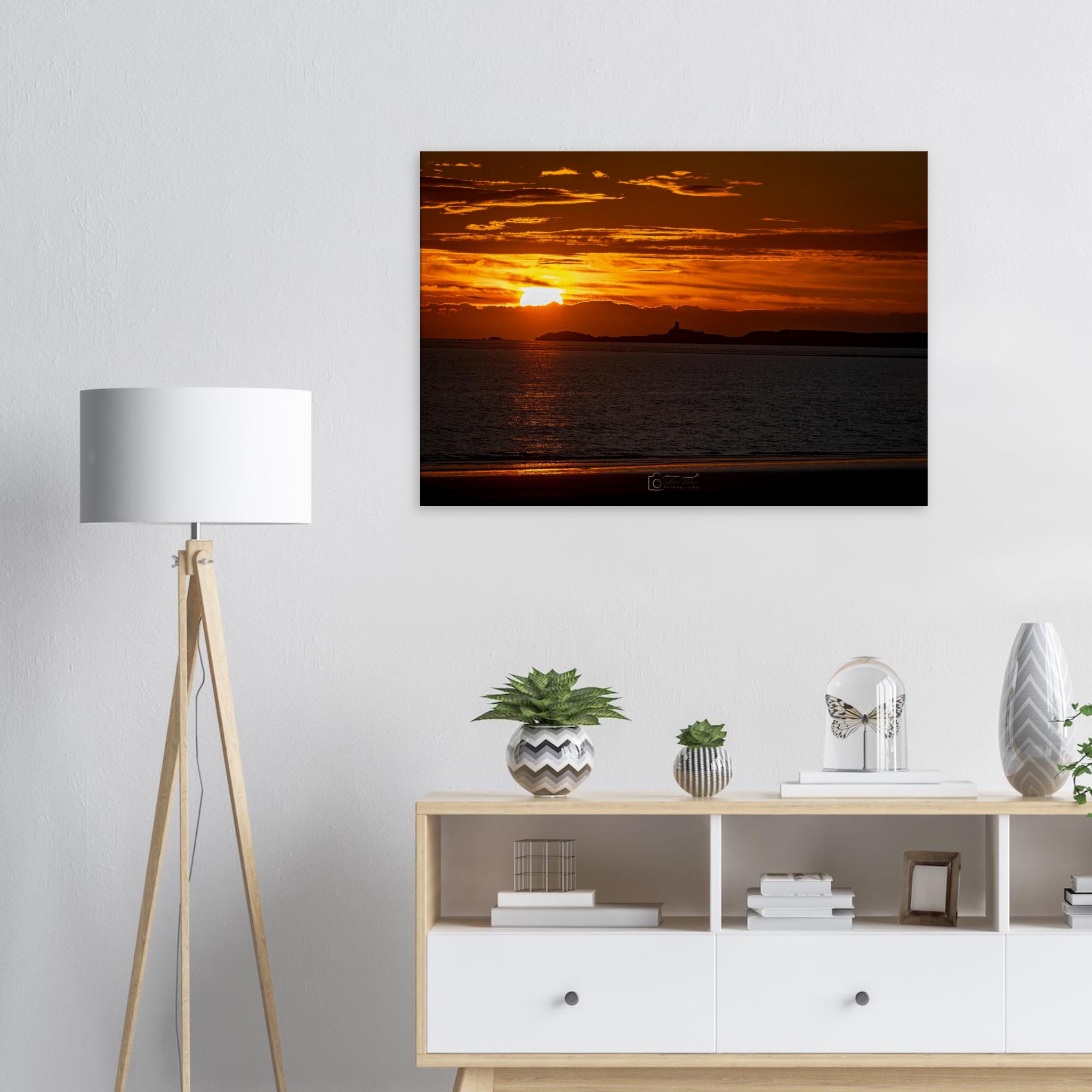 Transform your space with our captivating canvas print, “Sunset On Dinas Dinlle Beach.” This artwork captures the ethereal beauty of twilight, where the day gracefully transitions into night, enveloping you in the enchanting atmosphere of a serene shoreline. With gentle breezes and the sound of seabirds, it evokes memories of tranquil beach strolls.